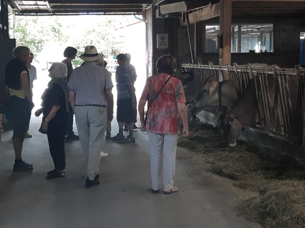 Ein Dutzend Neugierige liessen sich im Rahmen des ökumenischen Seniorenprogramms Südost von der Bäuerin Petra Fäh über den Hof Notkersegg führen. Dabei war viel zu erfahren über den ständigen Kampf gegen Blaggen, die Probleme des Bio-Landbaus, den Melkroboter, wie der Hof zum Verkaufsautomaten kam und vieles mehr. Besonders herzig waren die rosaroten Ferkel. Die Puten zeigten ihr schillerndes Federkleid, und manches Kalb liess sich gerne streicheln. Am Ende gab es Produkte vom Hof zu kosten.