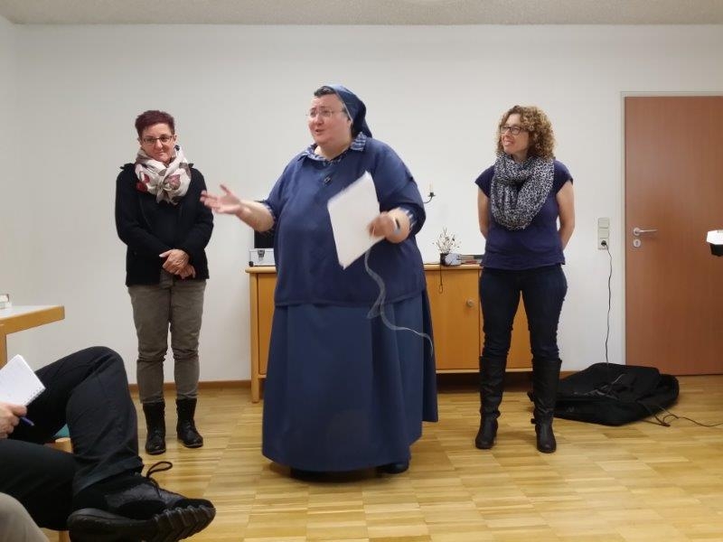 In einer pfarreiübergreifenden Gruppe von engagierten Menschen im Bereich der Kindergottesdienste der Pfarreien Engelburg und Bruggen machten wir uns Ende Oktober auf den Weg zu Schwester Teresa, der "skateboardfahrenden Nonne". Auf diesem Weg durften wir viel erfahren. Über uns selber, über das Gegenüber und auch über das Konzept von Schwester Teresa, wie sie mit viel Freude, Liebe, Begeisterung und Elan den Kindern jeden Monat aufs Neue ein Lächeln ins Gesicht zaubert und dabei die frohe Botschaft mit lebensnahen Beispielen verkündet.