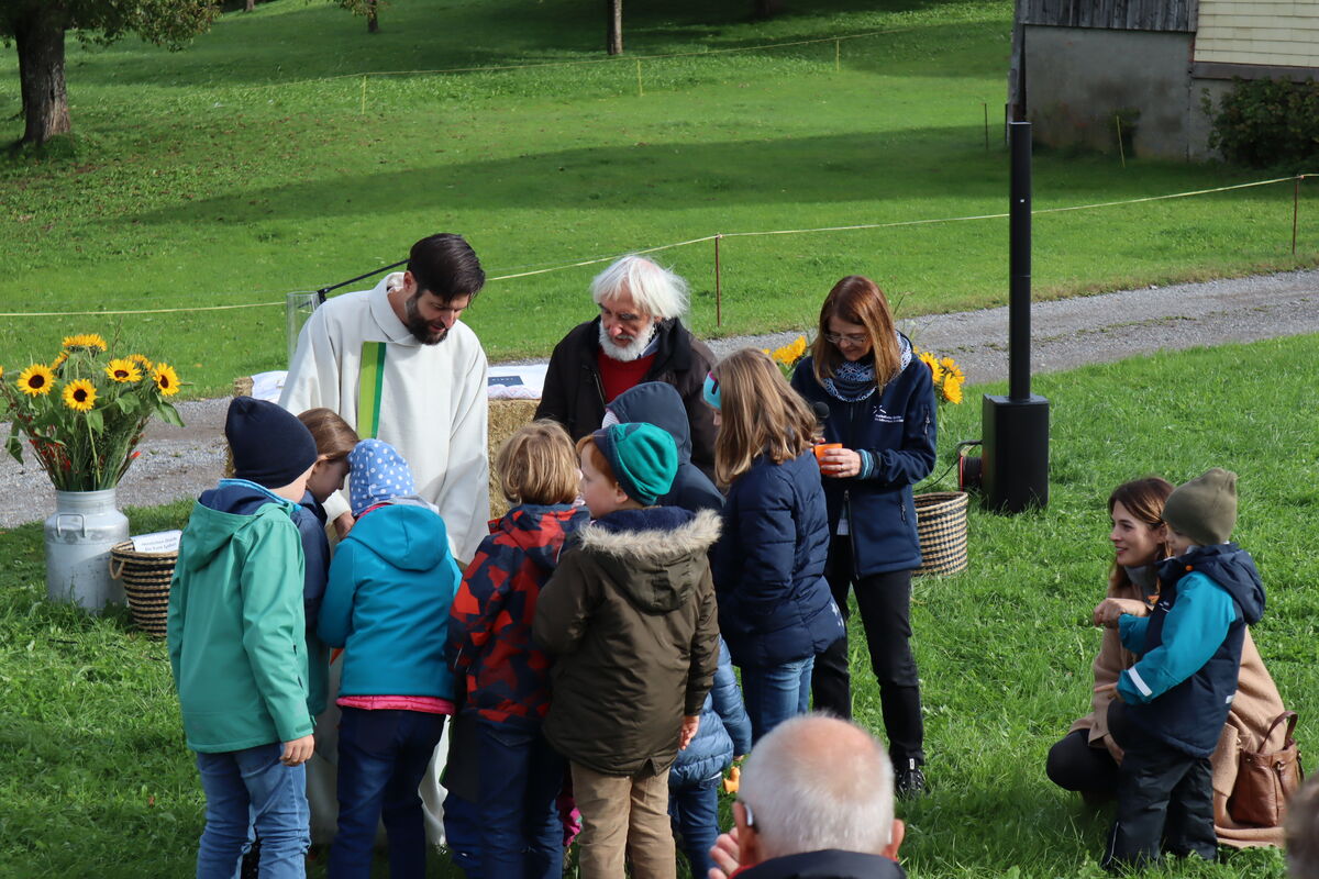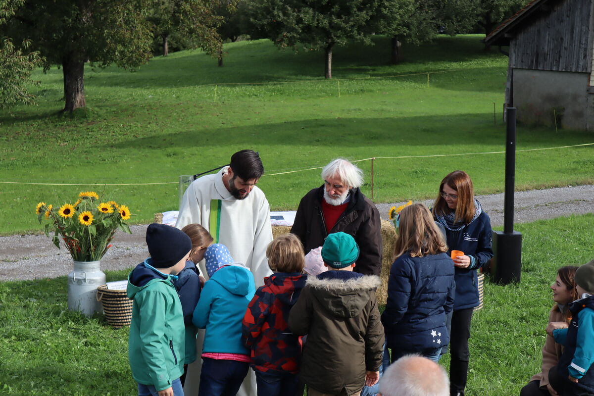 Zum fünften Mal durften wir mit den Familien der Quartiere Grossacker, St. Fiden, Stephanshorn, Neudorf und Halden Erntedank nun schon auf einem unserer Bauernhöfe im Südosten feiern. Dieses Jahr machten wir uns wieder zur Hueb auf, wo uns Familie Huber herzlich auf ihrem Hof willkommen hiess. Inmitten des kleinen Weilers konnten wir auch mit allen feiern, die das Glück haben, dort oben wohnen zu dürfen.