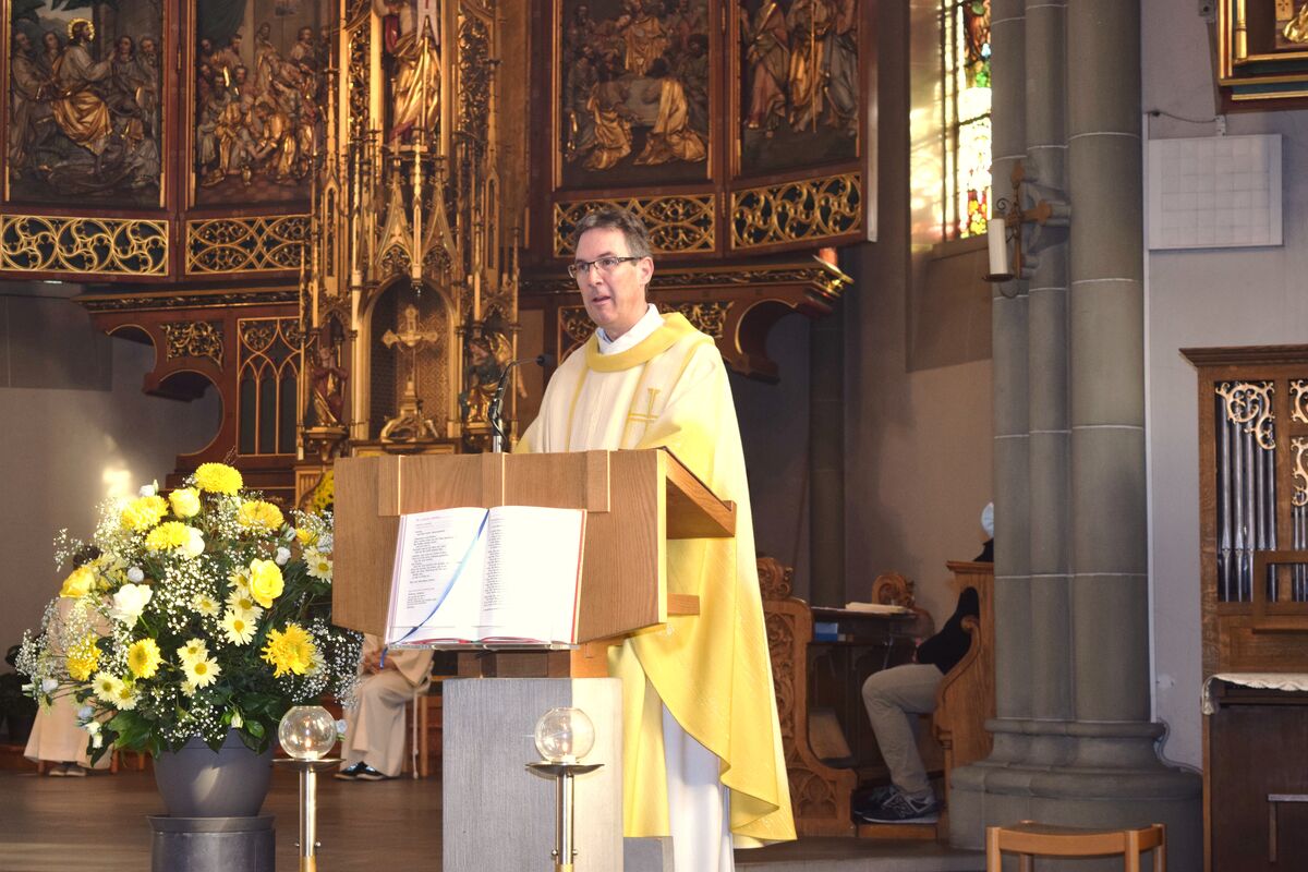 Die Sorge für Kranke und Schwache, das stille Zeugnis des Glaubens, wo ein Einfügen in weltliche Gegebenheiten nötig ist und das feste Vertrauen, dass Gott für uns die Freude nicht versiegen lässt - diese Botschaft des heiligen Otmar hat Beat Grögli, Pfarrer und ehemaliger Vikar der Pfarrei, am Patrozinium von St. Otmar in die aktuelle besondere Situation hinein formuliert. Ein Kirchenfest - in gewohnter Festlichkeit begangen - in ungewöhnlicher Zeit für eine Pfarrei jedoch ein höchst aktueller Auftrag!