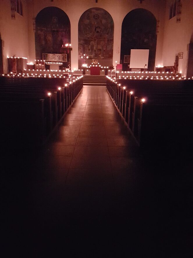 Viele Kerzen und adventliche Musik bestimmen den besinnlichen Gottesdienst.