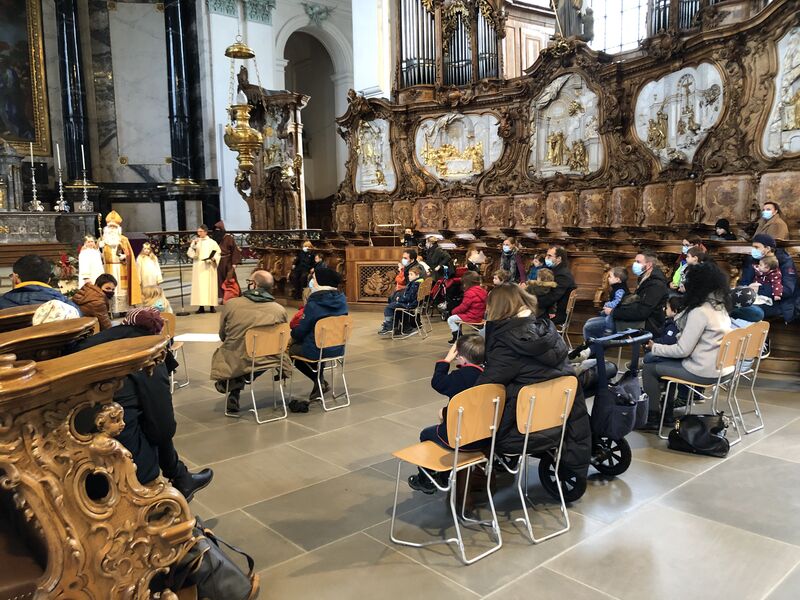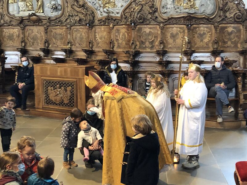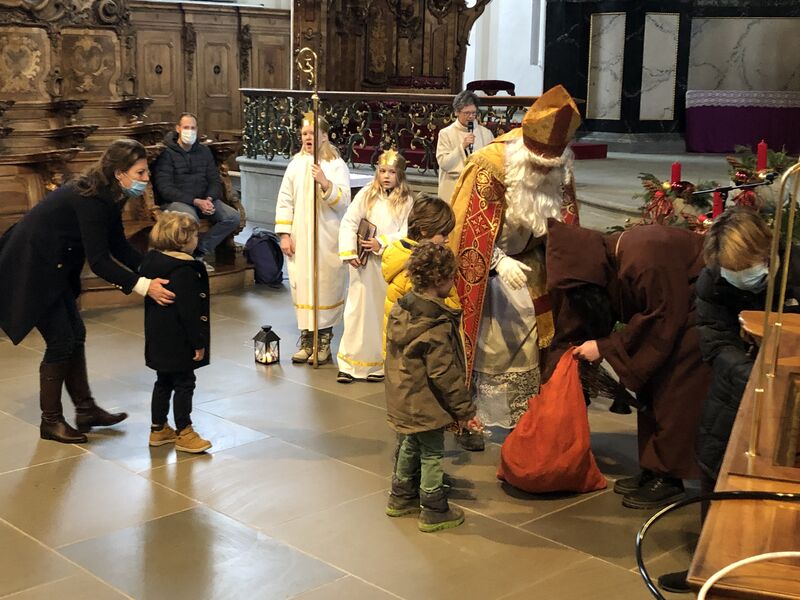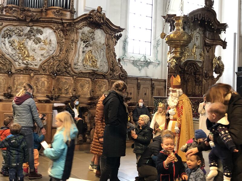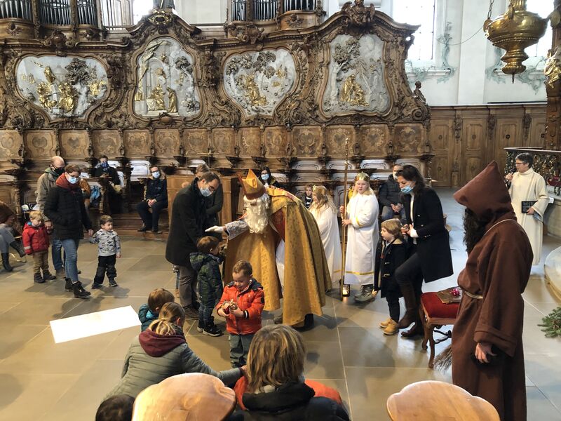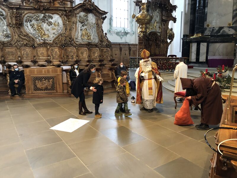 Kinder und ihre Familien haben sich vom wunderschönen Nikolaus in seinem festlichen Gewand, begleitet von Ruprecht und zwei Engeln, verzaubern lassen. Der Nikolaus hat sie im Chor der Kathedrale gesegnet und selbstverständlich jedes Kind mit einem Chlaussäckli beschenkt.