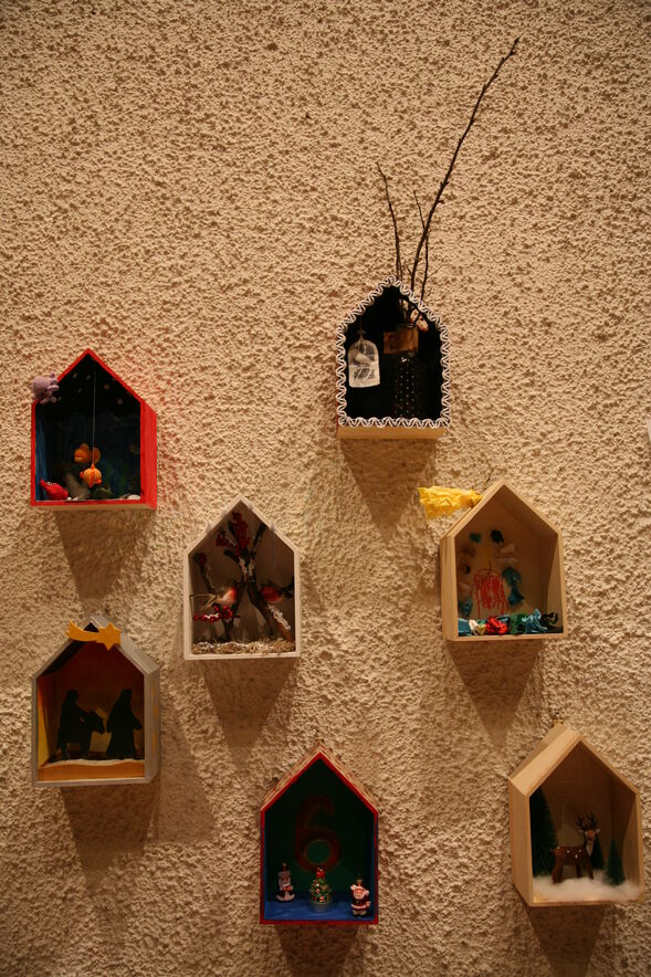 24mal Vorfreude auf Weihnachten: Vorfreude ist bekanntlich die schönste Freude; sie gemeinsam zu teilen und zusammen etwas zu gestalten, vervielfacht sie noch. Menschen aus unserem Quartier gestalten jeweils ein Holzhüsli für den Kalender an der grossen Wand in der Haldenkirche. Und heute ist schon das 7. dazugekommen.