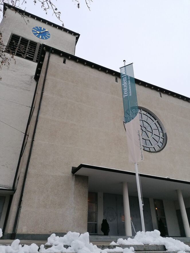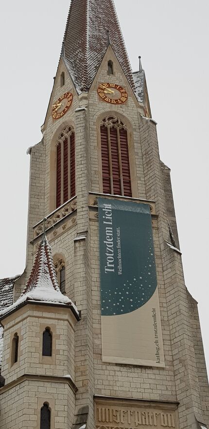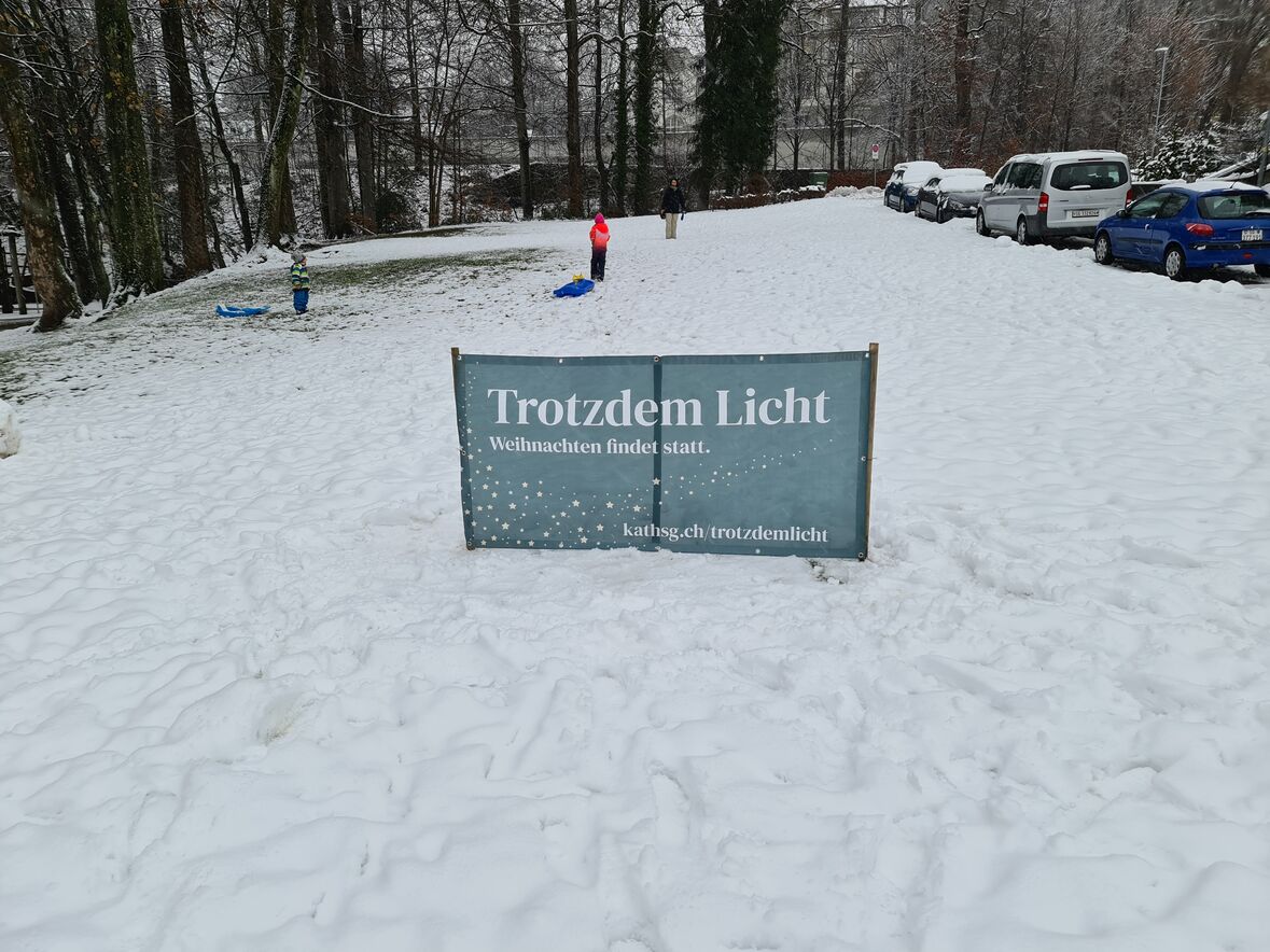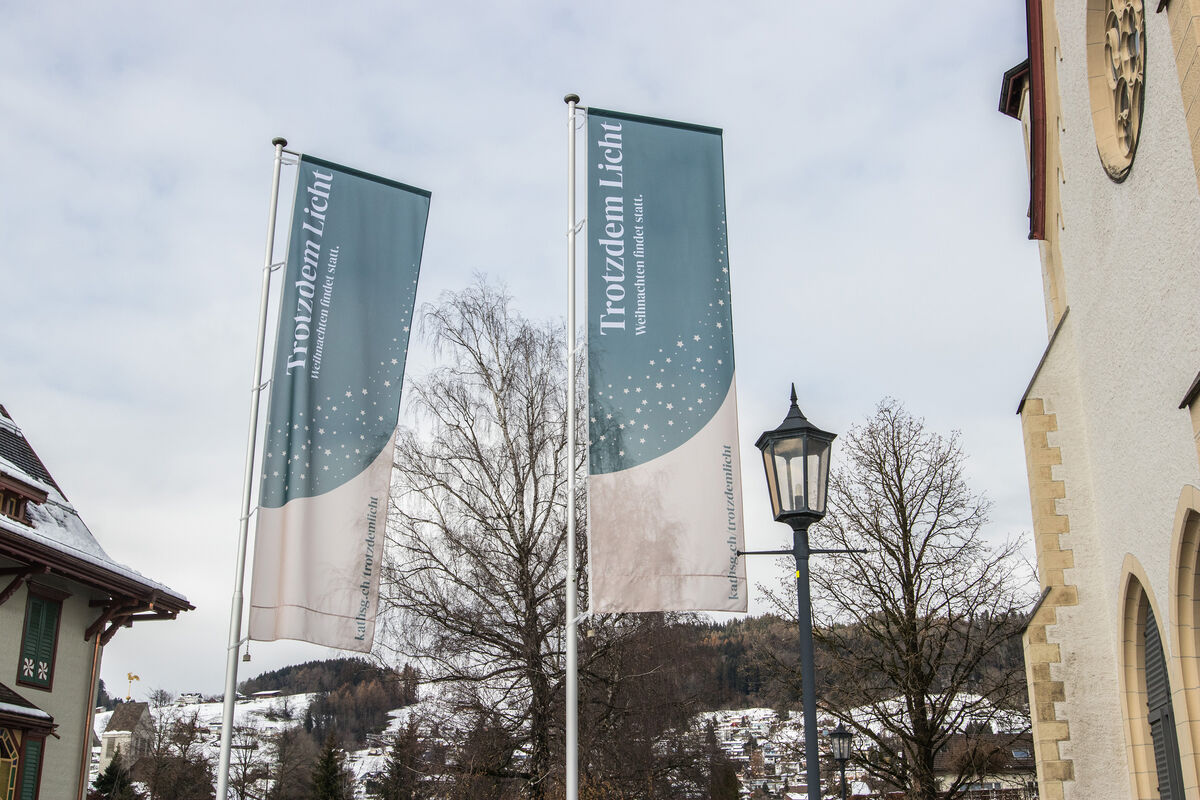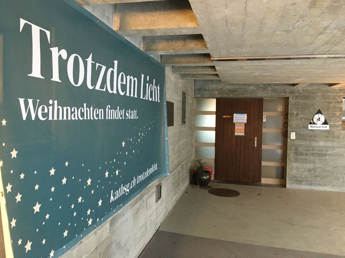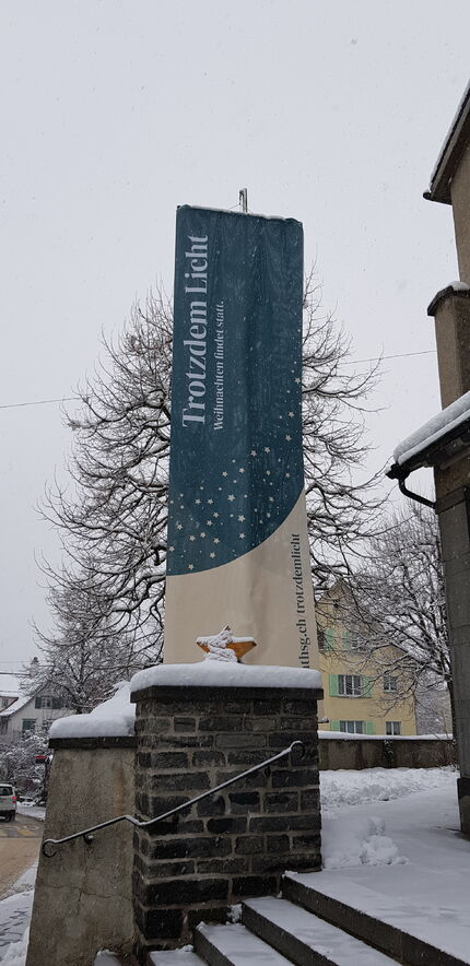 Die Banner an allen katholischen Kirchen der Stadt St.Gallen weisen darauf hin, dass Weihnachten auch dieses Jahr stattfindet und gefeiert werden will, trotz Corona. Auf der Webseite Trotzdem Licht finden Sie viele Möglichkeiten Weihnachten zu feiern und trotzdem die Schutzmassnahmen einzuhalten.