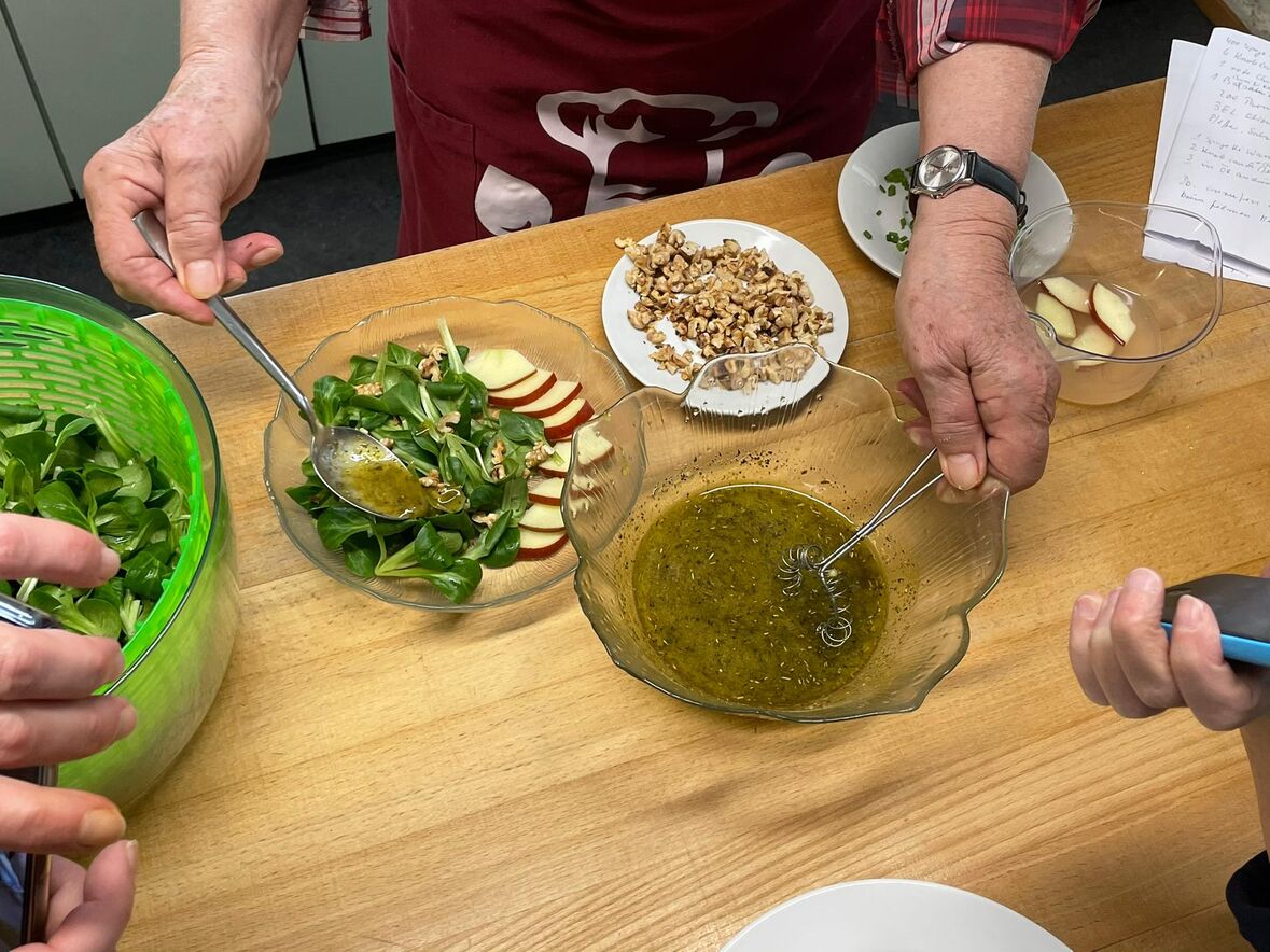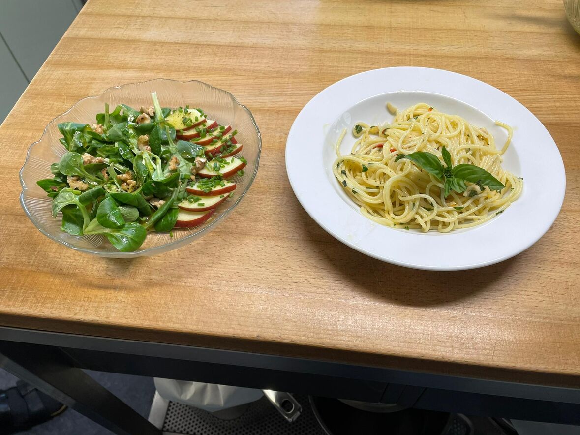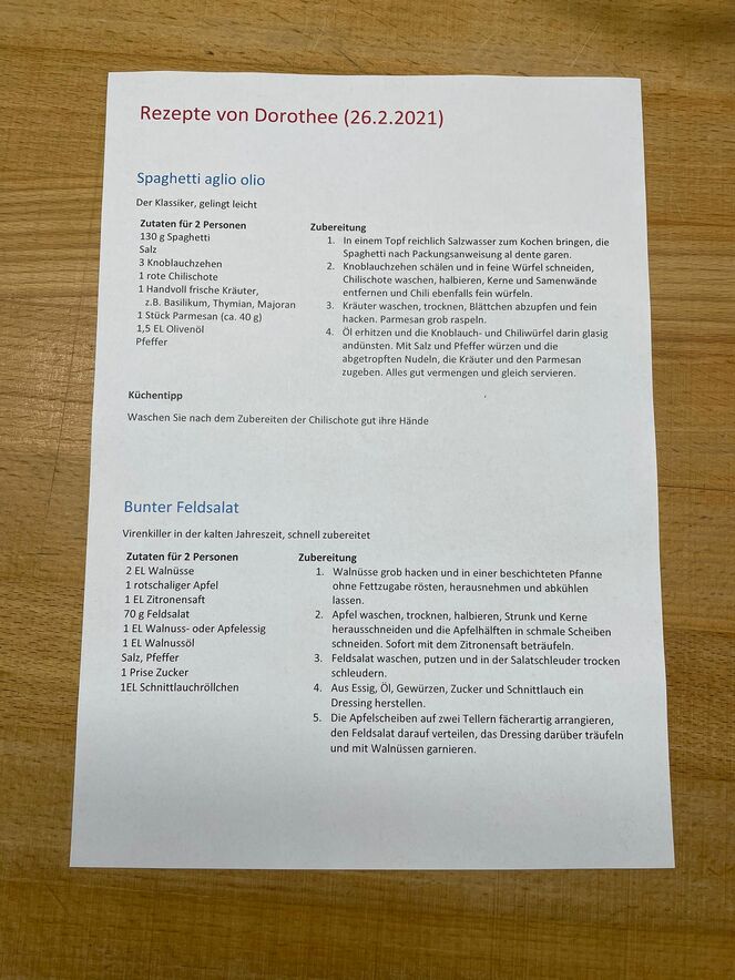 Bei der zweiten Ausgabe von Kochen live, durften wir heute unserer Köchin Dorothee über die Schultern schauen. Sie begeisterte uns mit ihrem Rezept Spaghetti Aglio Oglio und einem bunten Feldsalat. Auch heute durften im Live-Chat wieder Fragen zur Zubereitung und zum Rezept gestellt werden.