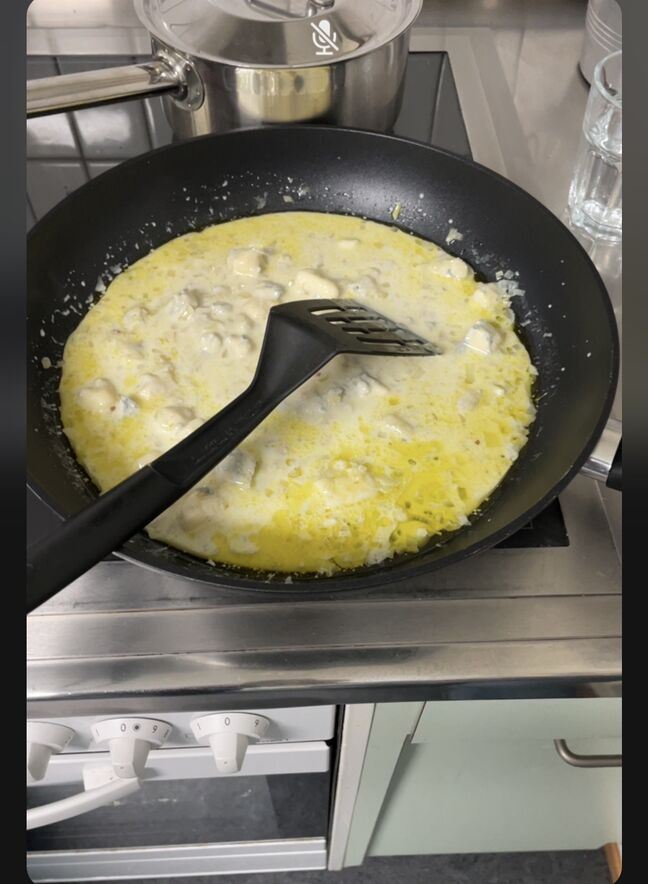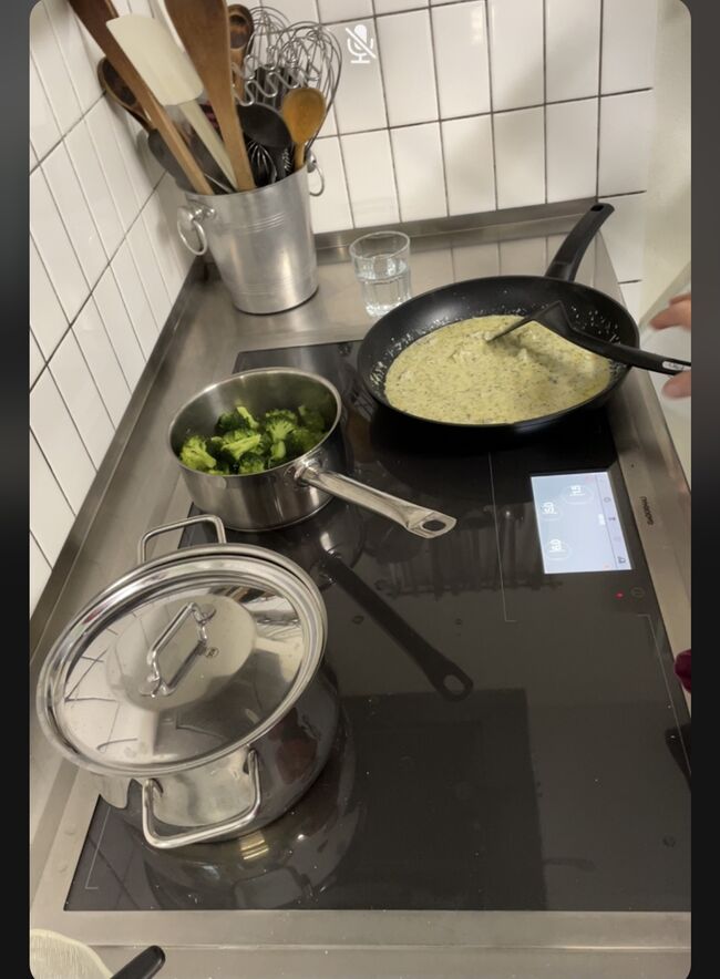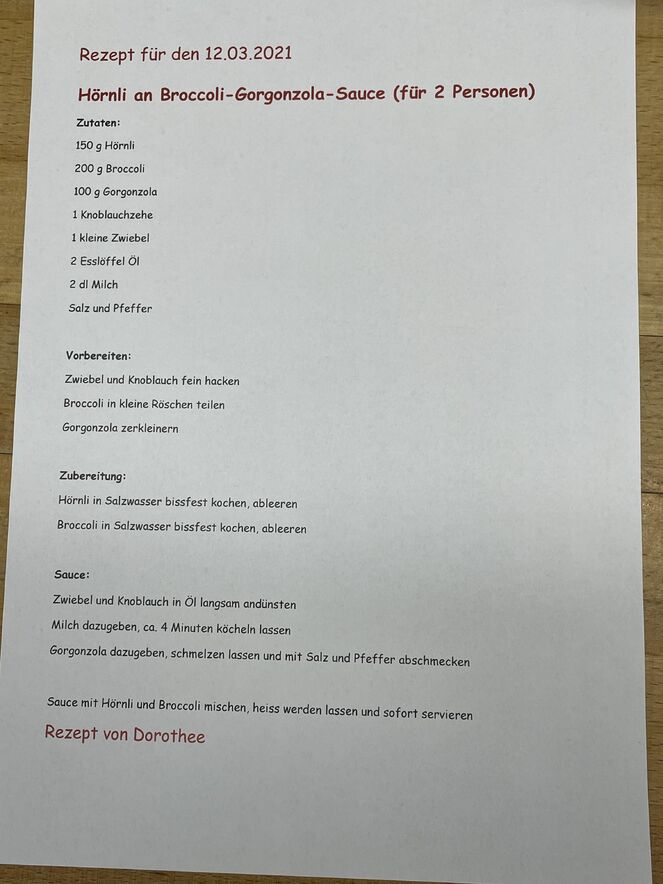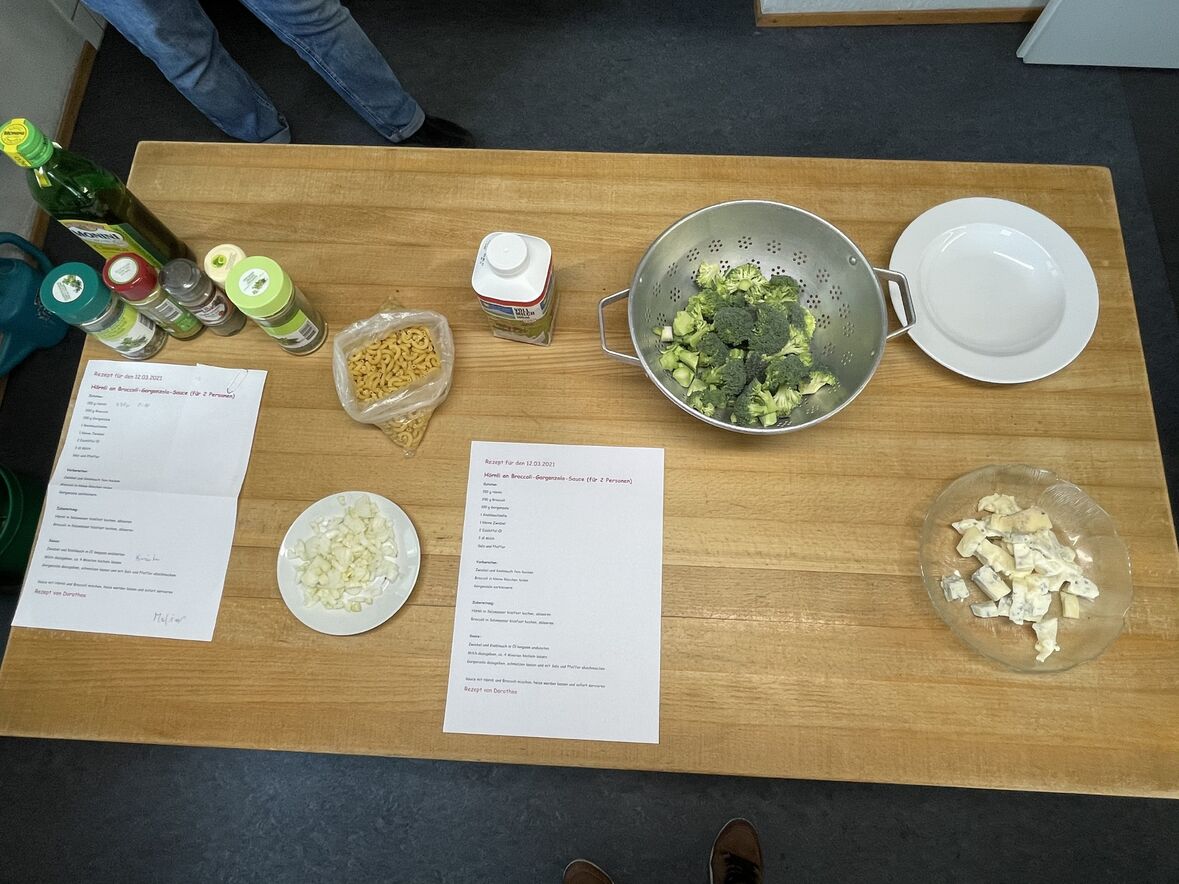 Auch heute wurde unser Gaumen wieder einmal verwöhnt. Wir durften live zusehen, wie unsere Köchin Dorothee Hörnli an einer feinen Broccoli-Gorgonzola-Sauce für uns zubereitet hat.