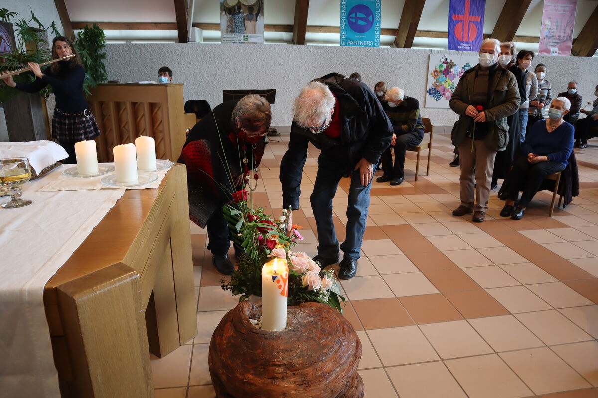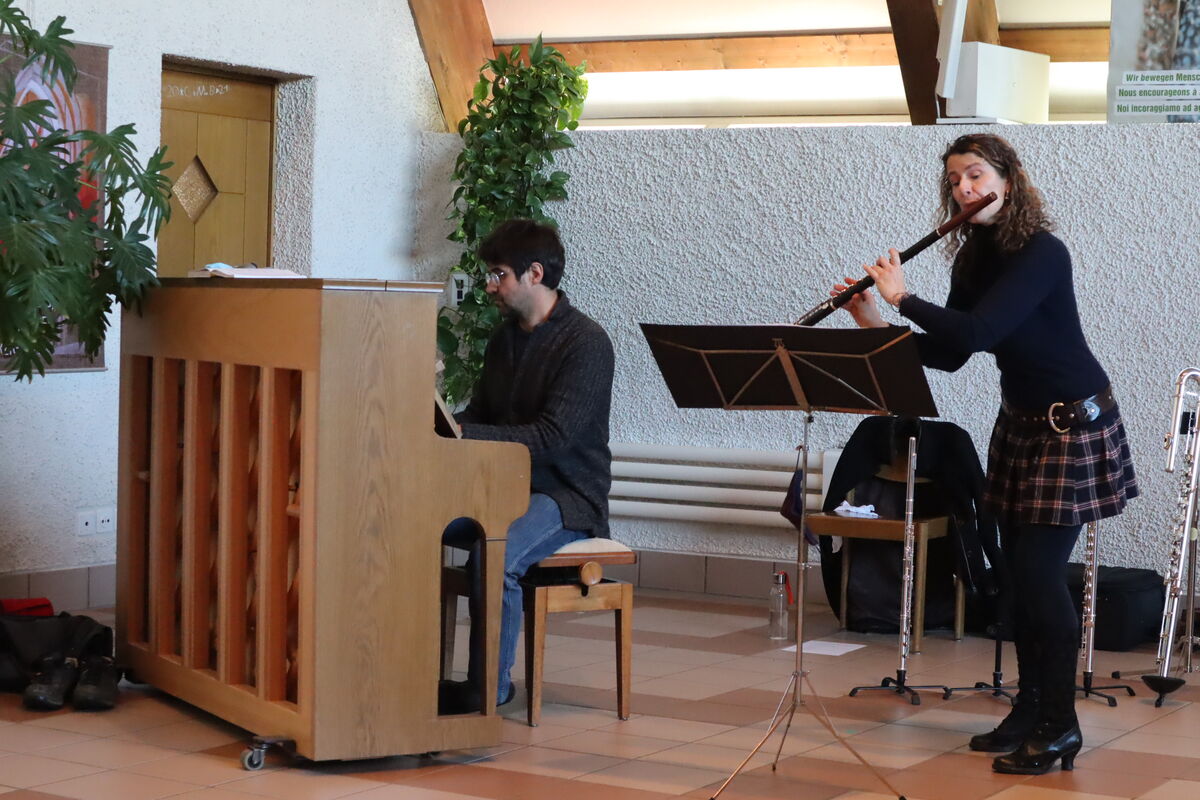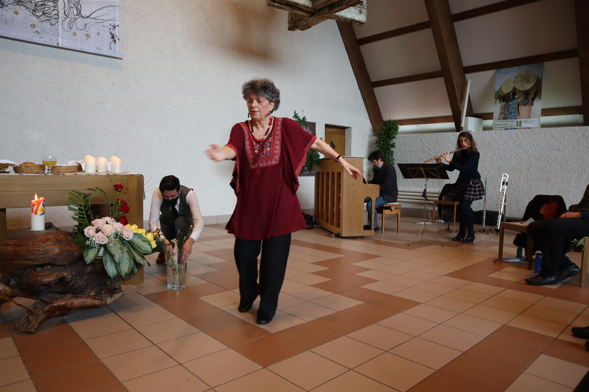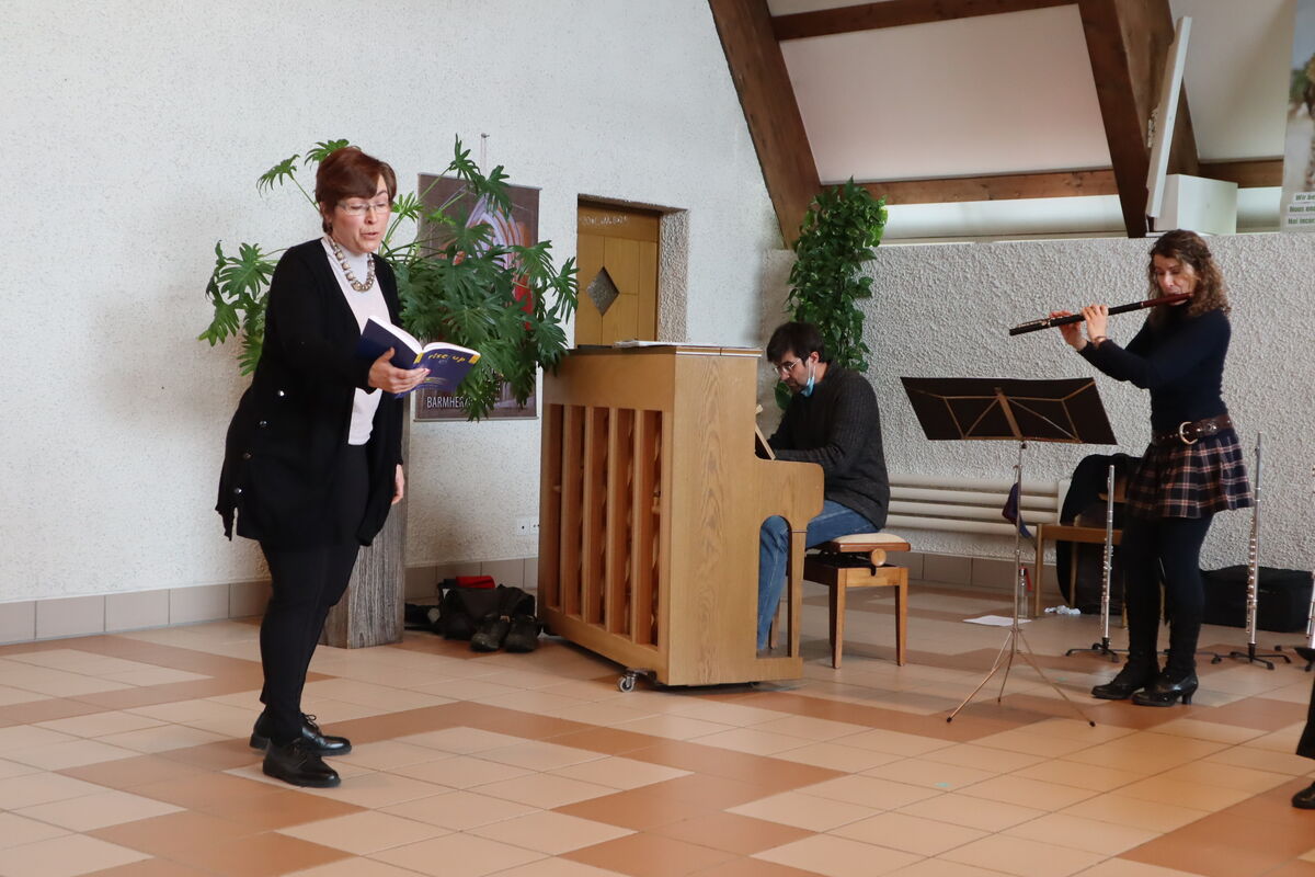 "Haldenlike" war wieder einmal der Gottesdienst, in dem sich die Ökumenische Gemeinde von ihrem stellvertretenden reformierten Pfarrer Ueli Friedinger verabschiedete. In diesem Gottesdienst schien sehr viel von dem auf, was die Theologie von Ueli Friedinger ausmacht: der Body - denn Leiblichkeit ist das Ziel der Wege Gottes. Aus diesem Grund hat auch Krisztina Sachs durch Tanz für Bewegung in diesem Gottesdienst gesorgt. Die Leiblichkeit hat auch die wunderbare Musik von Ruth Bischofberger (Flöten) und Alexander Sennhauser (Klavier) geweckt.
