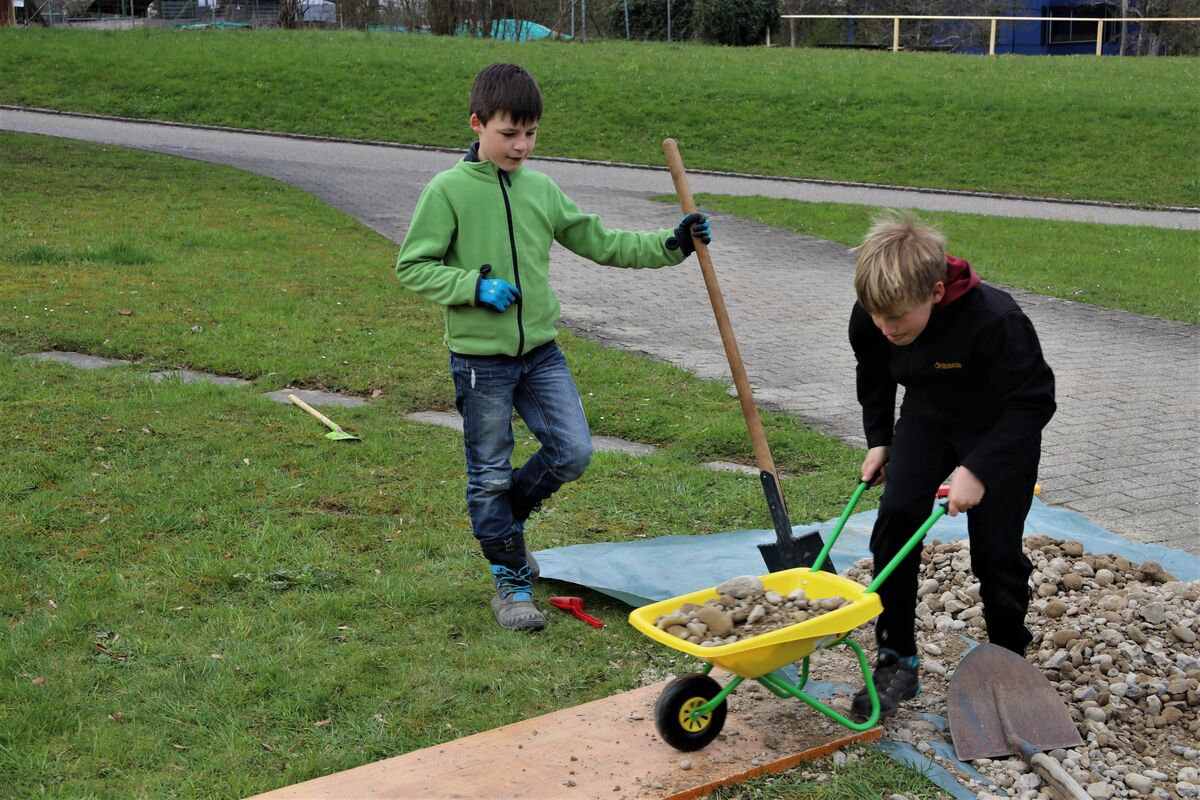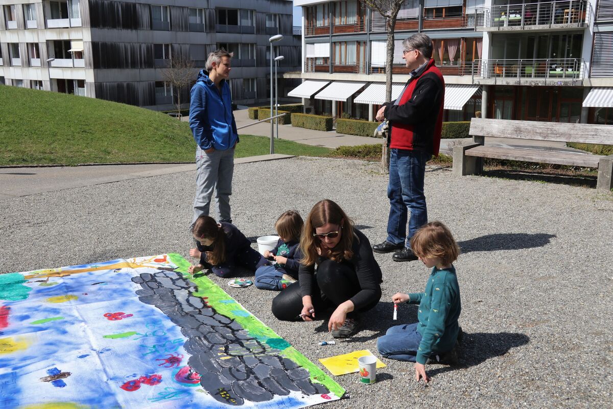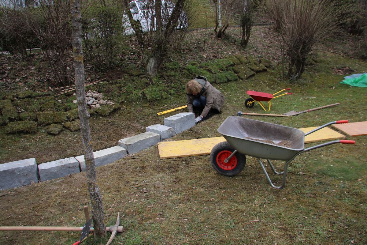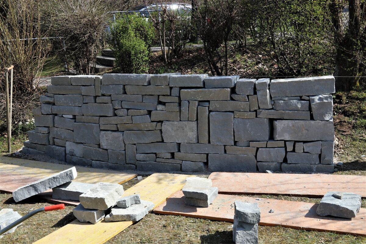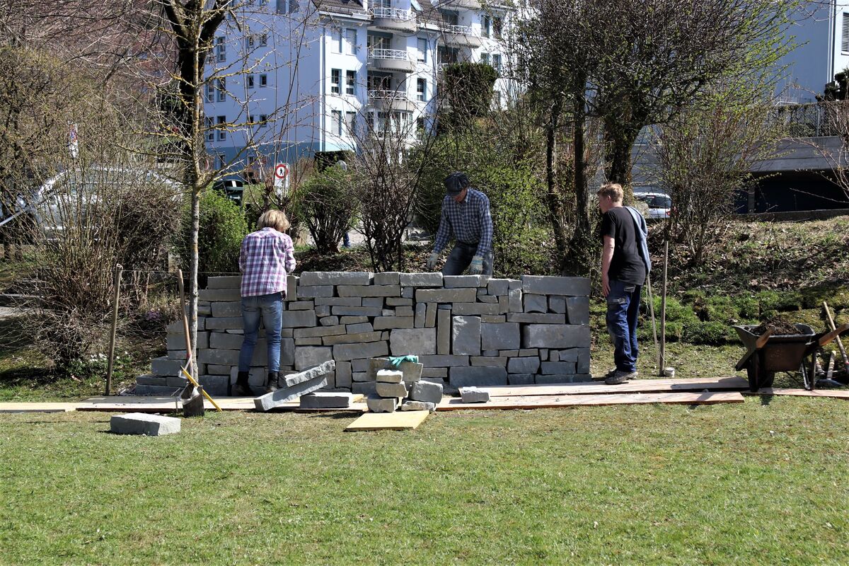 Verschiedenste Menschen aus dem Quartier, Erwachsene und Kinder, haben sich am Samstag vor dem Weissen Sonntag beim Bau dieser Trockenmauer beteiligt. Ein bunter Anlass für eine diverse Halden!