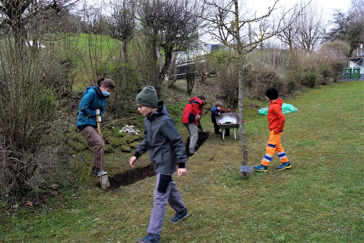 Die Gruppe nachHALDig engagiert sich für eine naturnahe Umgestaltung der Aussenflächen rund um die Haldenkirche. Dazu gehört auch der Bau eine Trockenmauer als Lebensraum für verschiedenste Insekten und Kleinstlebewesen.