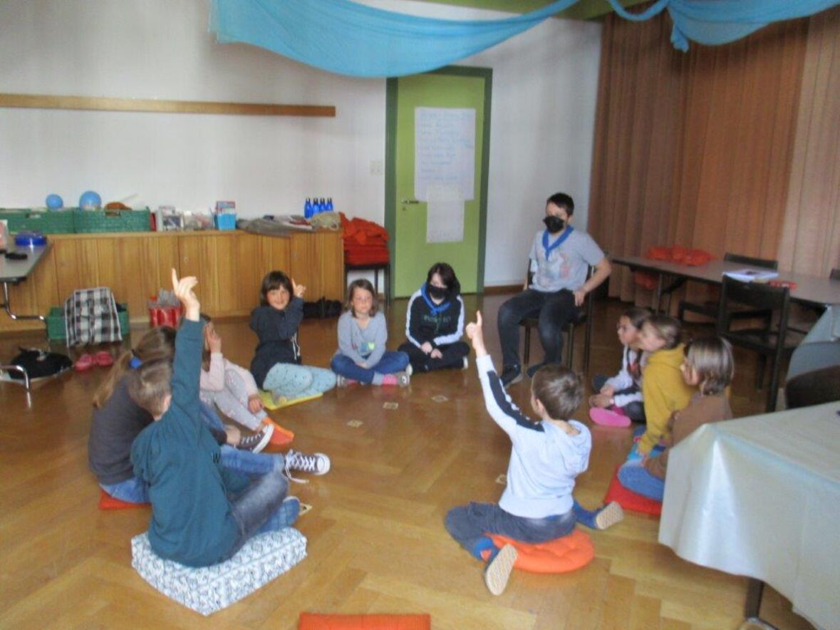 Als die Kinder morgens im Kila eintrudelten, konnte zuerst das spannende Theater gesehen werden. Danach wurde das Lieblingsspiel der Gruppe blau (Werwölfle) gespielt. Mit viel Energie konnten sich die Kinder im Kirchgemeindesaal an einer Stafete austoben. Den Nachmittag haben wir mit Fimo basteln verbracht. Es hat Riesen-Spass gemacht.