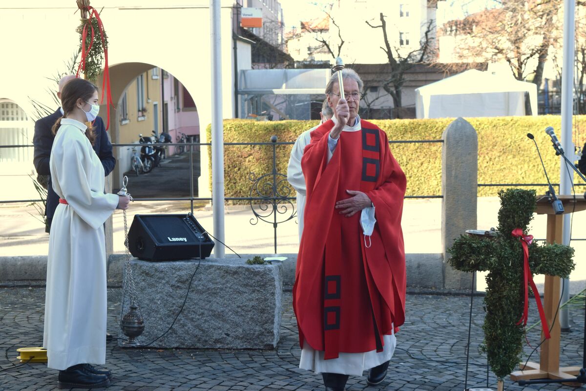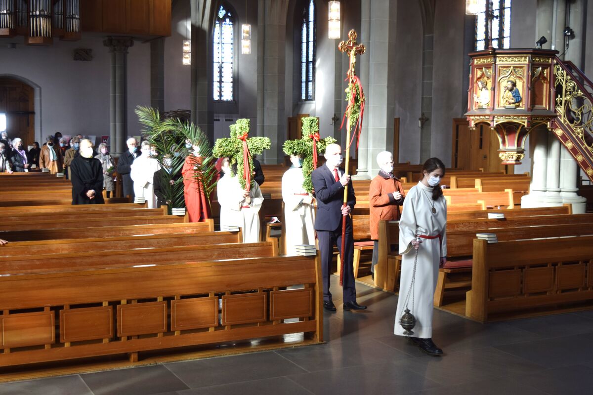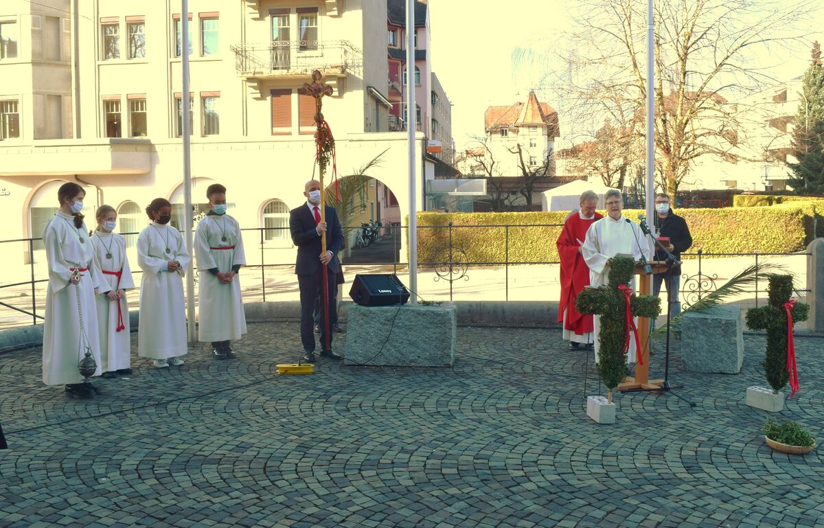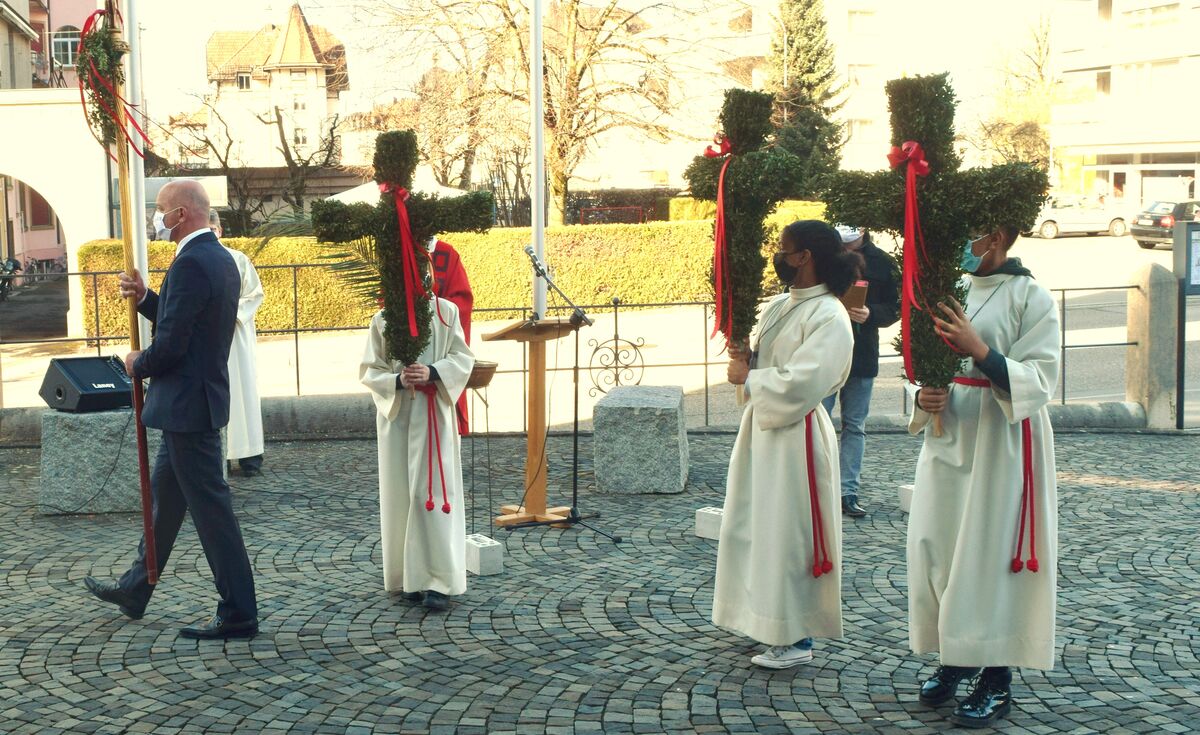 Keine Zeit im Kirchenjahr lebt so von eindrücklichen Zeichen wie der Weg von Palmsonntag auf Ostern hin. Hindurch durch alle Höhen und Tiefen des menschlichen Lebens. Und immer wieder hinaus vor die Mauern und Tore der Kirche – das wurde auch in St. Otmar erfahrbar. «Er ist nicht hier, er ist auferstanden». Osterglauben findet draussen statt. Auch wenn es stürmt!