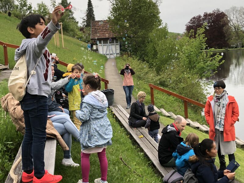 Wie ist das nun mit dem Heiligen Geist? Am Pfingstmontag waren Familien der Erstkommunionkinder auf Spurensuche in der Stadt. Verschiedenste Sprachen, die Gaben des Heiligen Geistes, das Brausen und Wehen vom Himmel, das Feuer – es gab viel zu entdecken.