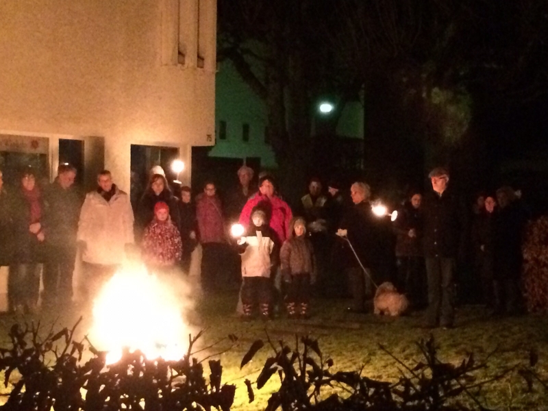 Im Rahmen des Winkler Fackelmarsches wurden die diesjährigen Adventsfenster feierlich mit Blasmusik, Geschichter und Feuerschein eröffnet.