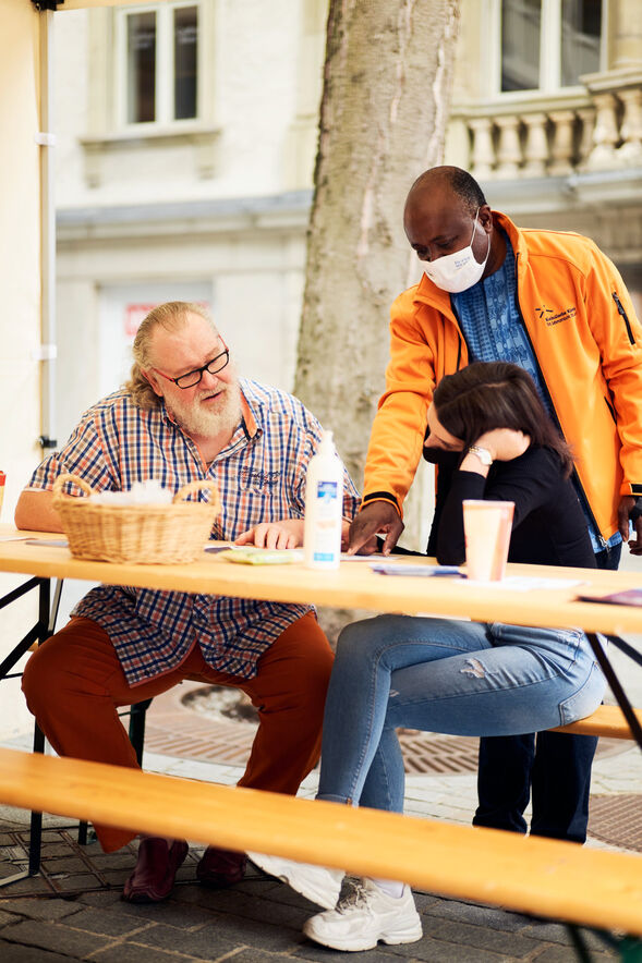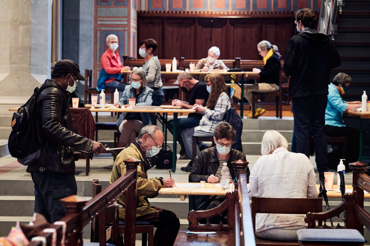 Am 5./6. Juni wurden im Rahmen der Aktion «Beim Namen nennen» der über 44'000 Menschen gedacht, die seit 1993 bei der Flucht nach Europa ums Leben gekommen sind. Ihre Namen wurden während 24 Stunden in der Kirche St.Laurenzen verlesen. Unzählige Freiwillige schrieben die Namen auf schmale Stoffstreifen, welche an der Aussenfassade der Kirche aufgehängt wurden.