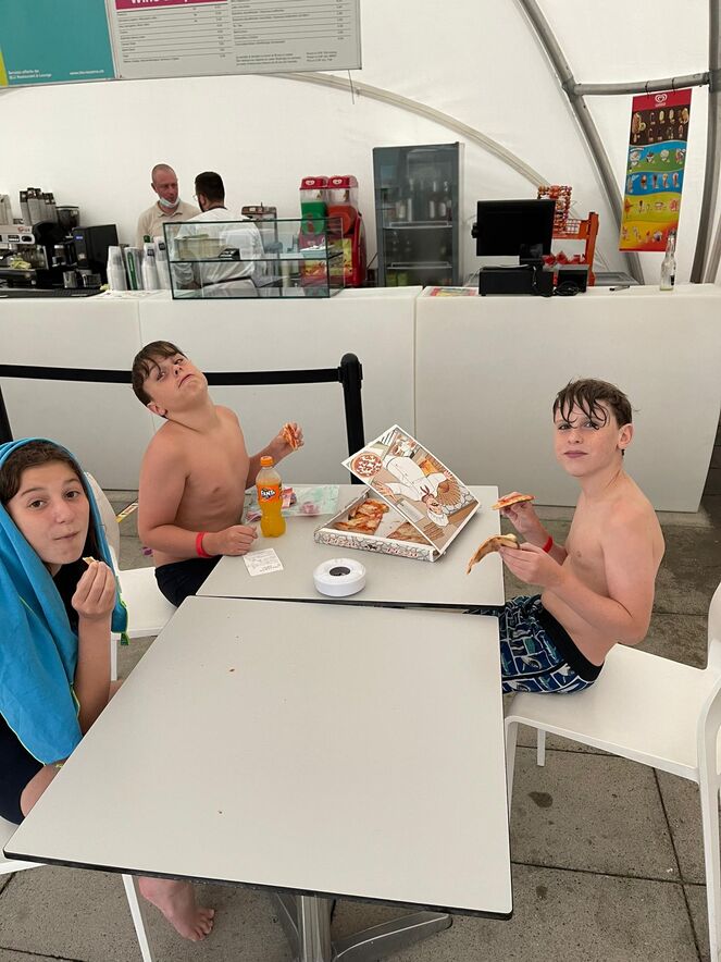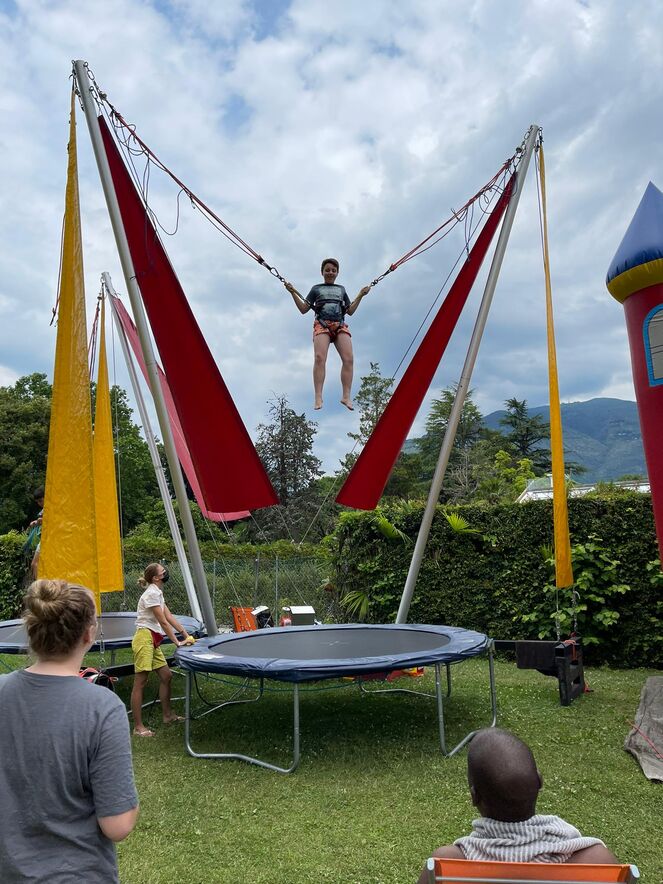 Grau, grauer, Sonnenschein, weil die Wetterprognose uns am Dienstag im ganzen Tessin Regen und Gewitter vorhergesagt hat, entschieden wir uns in ein Hallenbad zu gehen, nämlich in das Lago Locarno. Adrenalin, Spass, feine Snacks und plötzlicher Regenschauer der unsere Jugendlichen nicht abhielt, um nach dem Baden noch kurz Locarno zu betrachten. Ein kurzer Stadtbummel und danach ging es ins Campo zurück.