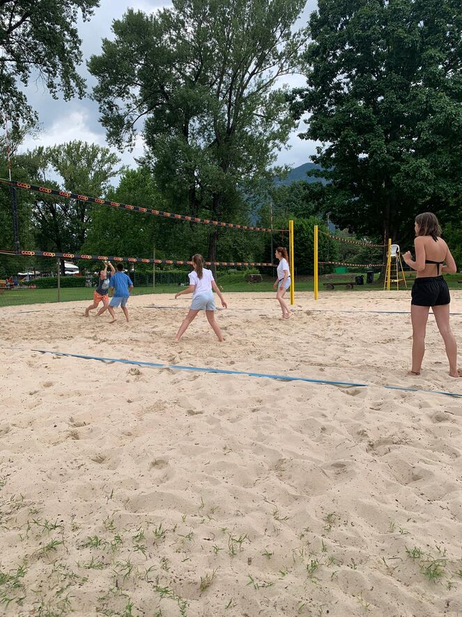 Der frühe Vogel fängt den Wurm! Bereits morgens um 08:30 Uhr trifft die ganze Truppe von selbst beim Frühstück ein. Nachdem alle gefrühstückt haben und bei Kräften sind, wird die Verpflegung vorbereitet für den Mittag und Nachmittag; ein paar feine Früchte, Farmer, Brötchen und los geht’s. Den Nachmittag verbrachten wir zwischen Volleyballfeldern und Sprungturm. Sonne gut, alles gut das dachten sich eine Gruppe Jugendliche und Kinder und blieben mit Ivan im Lago, während die anderen in Ascona nach den perfekten Spotlights oder nach einem passenden Souvenir suchten. Eigenständigkeit wird Gross geschrieben. Während die eine Gruppe mit Marcell wieder zurück zum Campo ging, gingen die anderen mit Claudia unser Abendessen einkaufen. Kein TV, sondern Gesellschaftsspiele, Runde für Runde. Die anderen unterhalten sich in den Zimmern und die Einkaufstruppe bereitet das Abendessen zu.