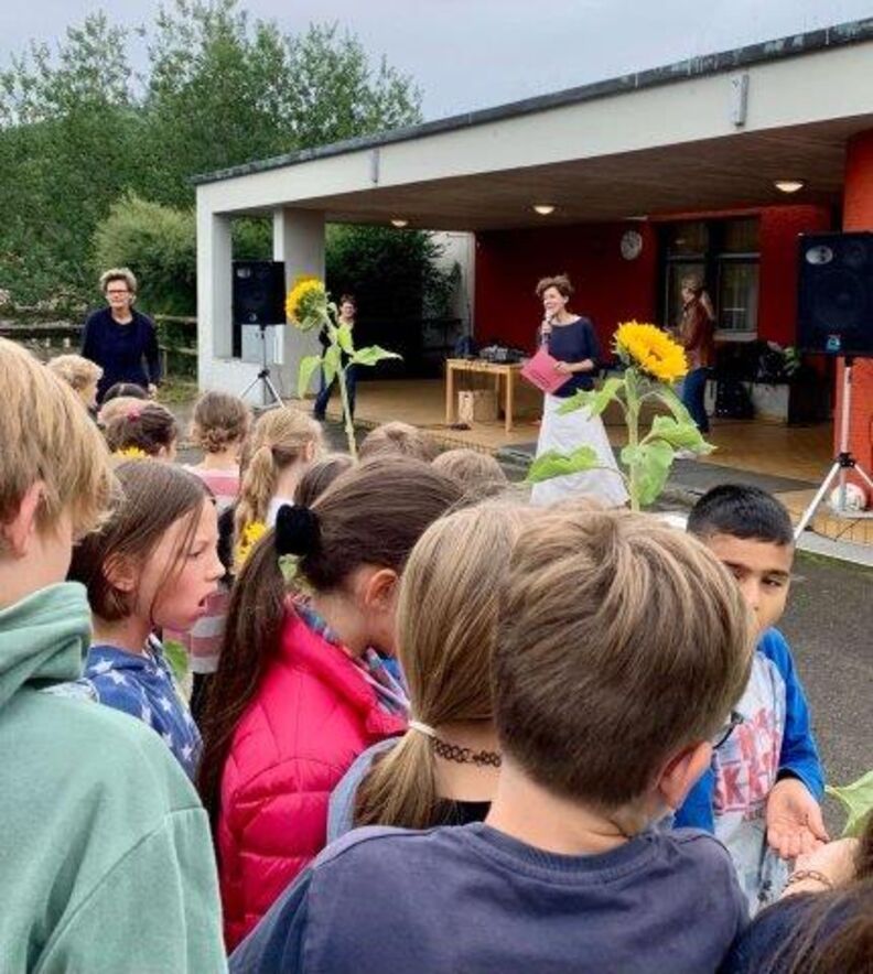 Auch in diesem Jahr wurden die Erstklässlerinnen und Erstklässler mit einer Sonnenblume im Schulhaus Riethüsli begrüsst. Das Jahresmotto heisst zämepacke, damit das neue Schulhaus gebaut werden kann. Darum haben die Kinder unter der Leitung von Elisabeth Weber ein Zügellied gelernt: Mer muent zügle – jetzt gots los-Kischte zämepacke – mögs guet go! Damit es wirklich gut geht, bekam jede Klasse einen Schutzengel für das Klassenzimmer und eine Portion Energie in Form von Traubenzucker. Das neue Schuljahr kann beginnen.