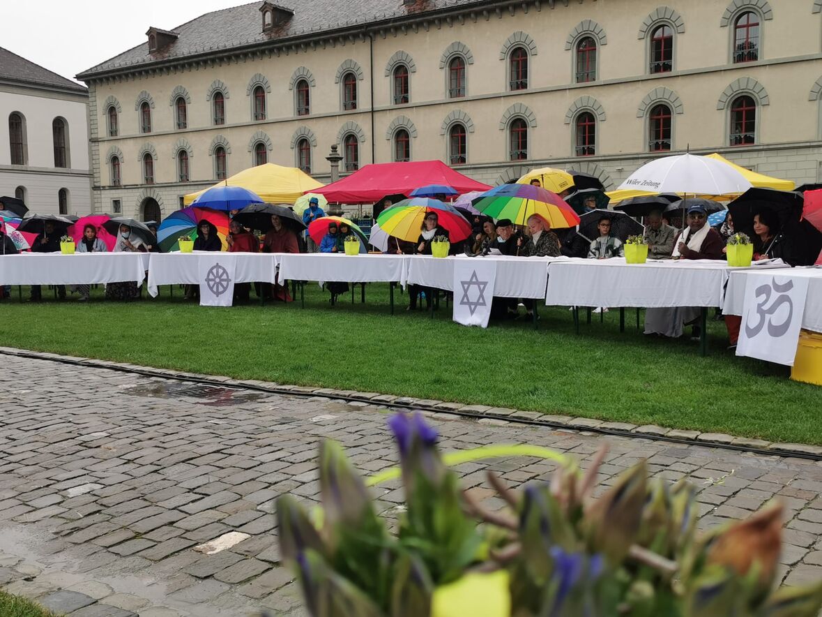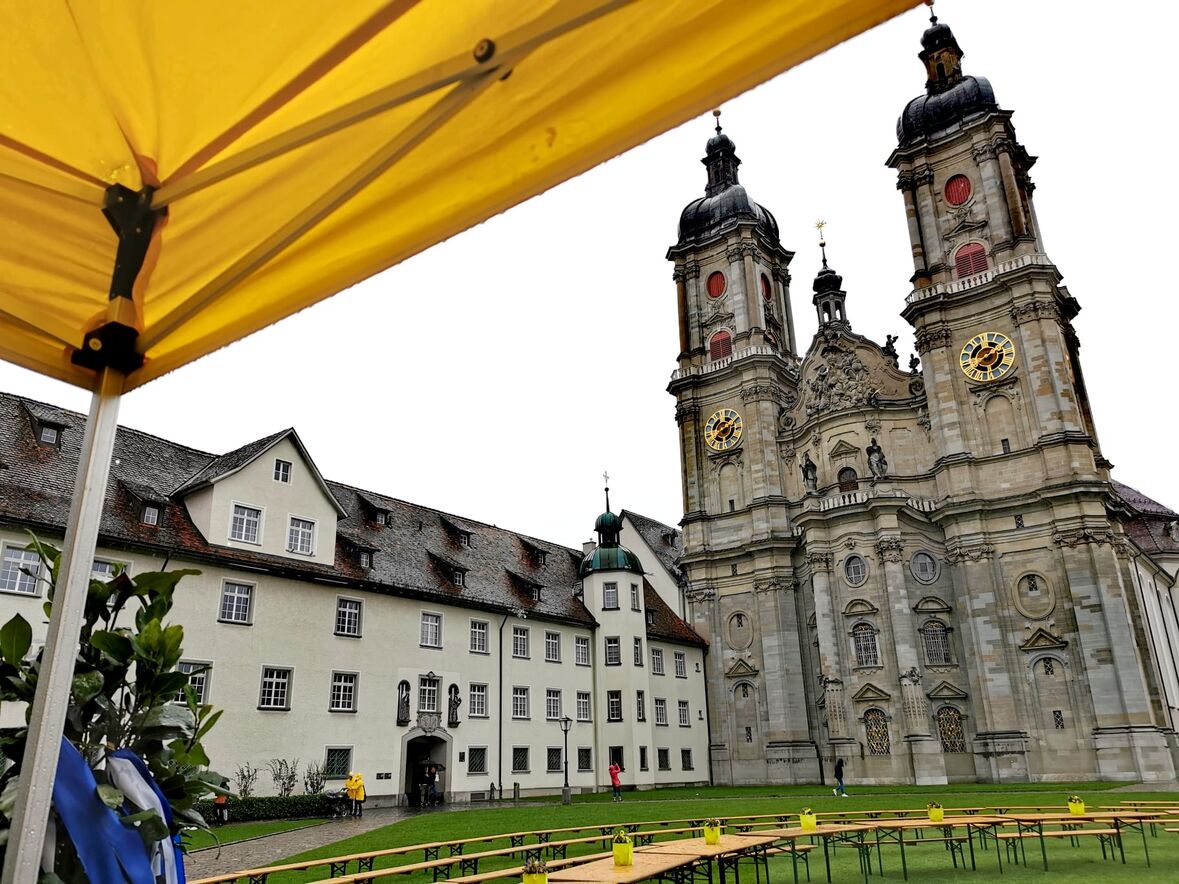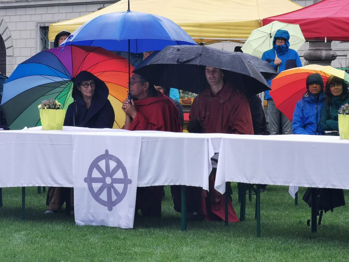 Menschen aus 20 verschiedenen Religionsgemeinschaften aus St. Gallen und Umgebung hatten sich trotz stark anhaltendem Regen und spürbarem Temperatursturz nicht abhalten lassen, die interreligiöse Feier auf dem Klosterplatz zu feiern. Der Bettag wird in St. Gallen gemeinsam von Kanton und Stadt St. Gallen, den Landeskirchen sowie vielen anderen Religionsgemeinschaften gestaltet.