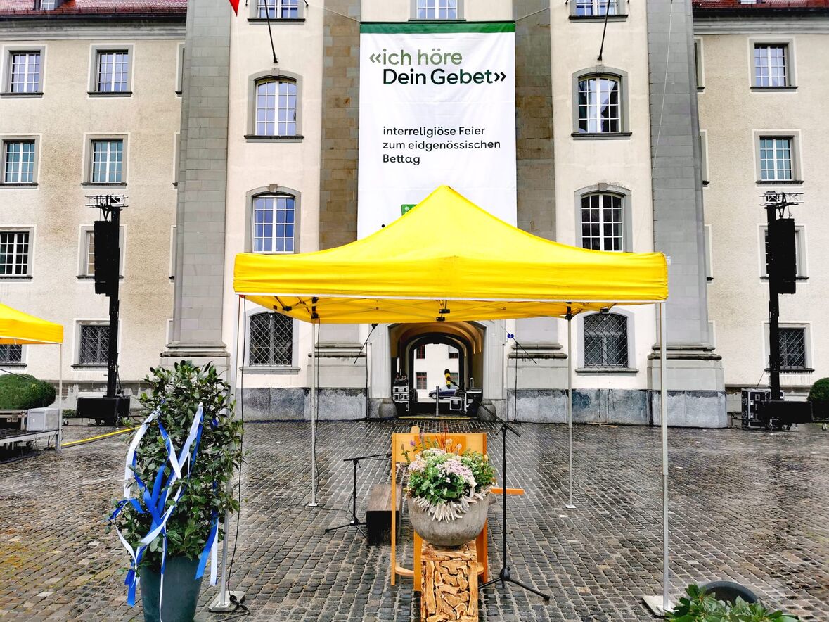 Am Eidgenössischen Dank-, Buss- und Bettag, Sonntag, 19. September 2021, fand auf dem Klosterplatz St. Gallen die Interreligiöse Bettagsfeier statt. In diesem Jahr stand die Feier unter dem Motto «Ich höre dein Gebet um Heilung». Gedacht wurde allen heilenden und helfenden Kräften in der COVID19-Pandemie.