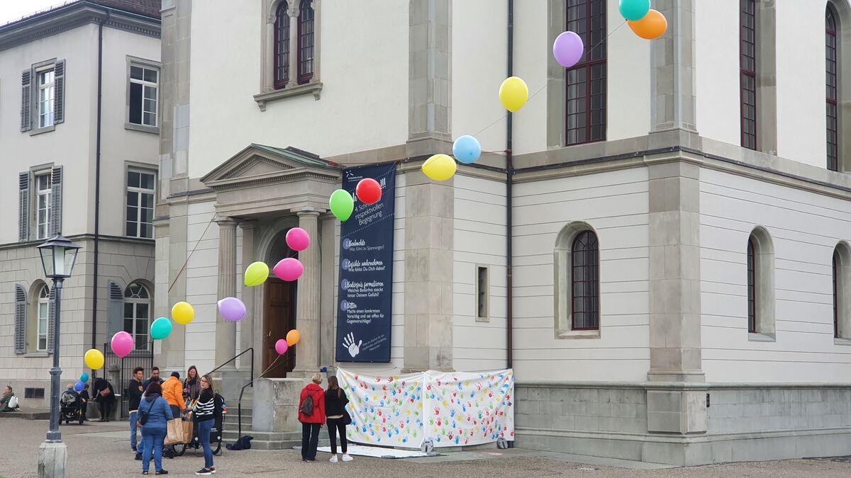 Die Cityseelsorge der katholischen Kirche im Lebensraum St.Gallen hat vom Di. 28. bis Do. 30. September 2021, jeweils von 12 bis 17 Uhr mit einer öffentlichen Aktion auf dem St.Galler Klosterplatz dazu eingeladen, gemeinsam ein Zeichen für ein respektvolles und friedliches Miteinander zu setzten. Über 300 Personen setzten ein solches Zeichen mit ihrem Handabdruck.