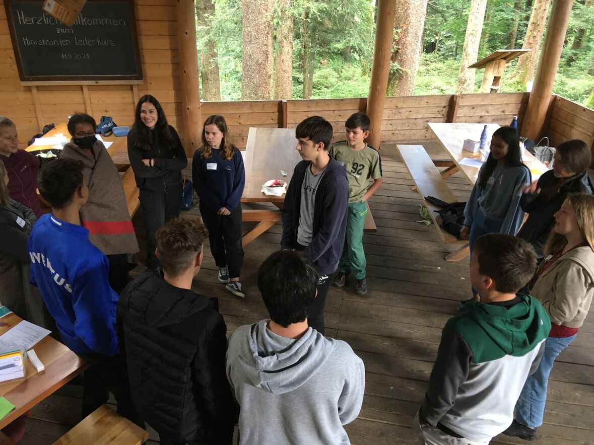 15 ältere Ministrant*innen aus verschiedenen Pfarreien unseres Dekantes bereiteten sich an diesem Samstag auf ihre Aufgabe als Leiterinnen und Leiter in ihrer Minischar vor. Als Kursort wurde der Walderlebnisraum Gais gewählt und so fand der Kurs quasi outdoor statt. Nach verschiedenen Kennenlernformen standen folgende Ausbildungsinhalte auf dem Programm: Vertiefung von liturigschem und Mini-Wissen, Planung von Minianlässen sowie die Vorbereitung und Leitung von verschiedenen Spielformen. Das Mittagessen wurde gemeinsam auf dem Feuer zubereitet. Das ganze Programm war sehr spielerisch und erlebnisorientiert aufgebaut und schien den Teilnehmenden Spass zu machen.