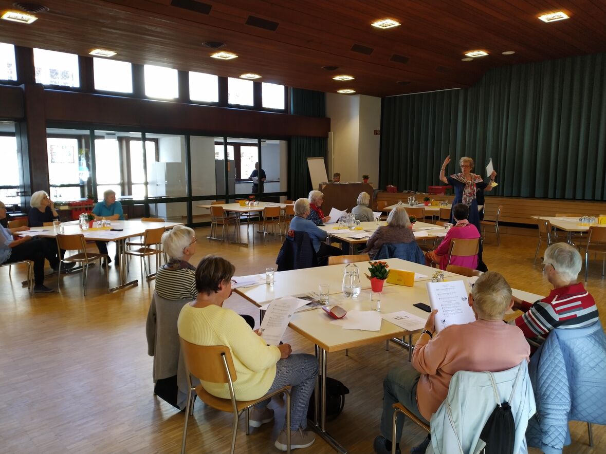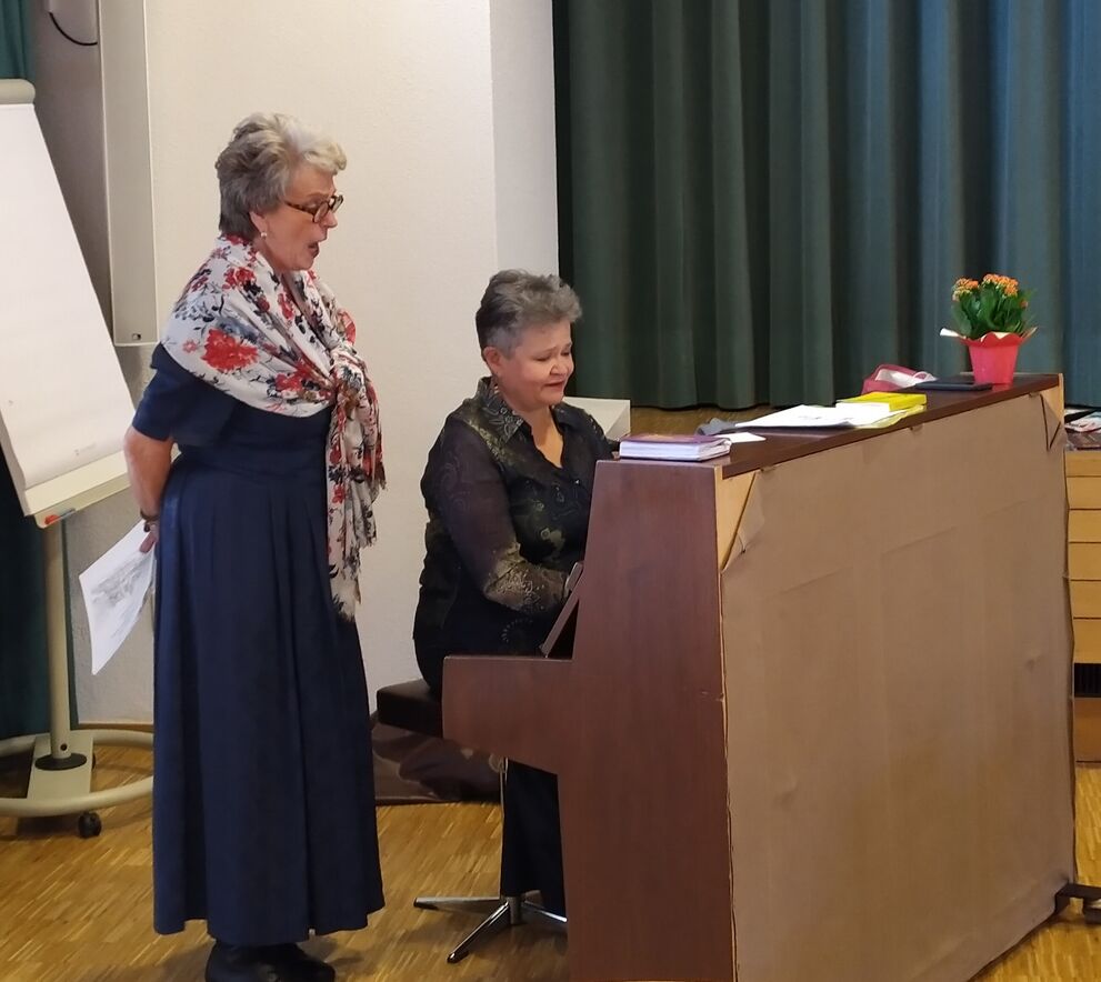 Der Singnachmittag im Programm 60plus im Westen wurde von Caecilia von de Laak geführt und von Ursula Oelke am Klavier begleitet. Mit einem vielfältigen Repertoire führten die beiden durchs fröhliche Programm und gekonnt durch die vier Jahreszeiten. Auch Kanons wurden gesungen. Im Anschluss wurden Süssmostcrème und Kaffee serviert.