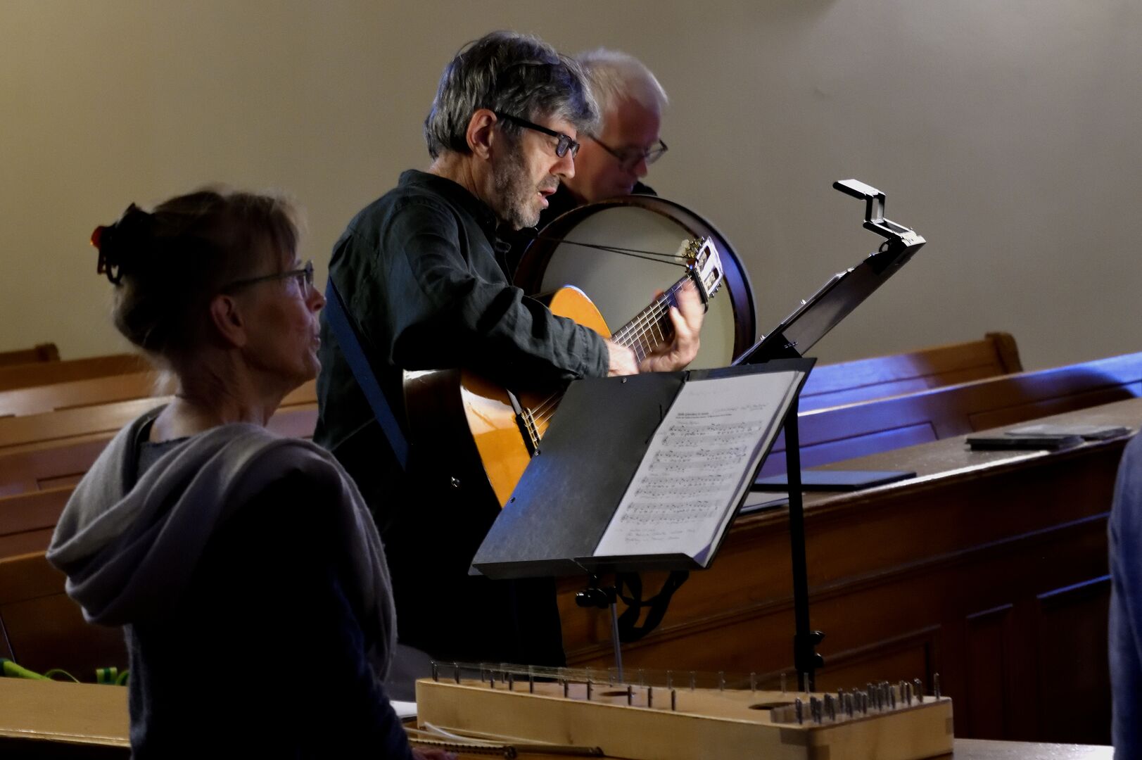 uns ein, uns einen Moment der Ruhe zu schenken, unsere Gedanken loszulassen und unsere Voreinstellungen für einen Moment «auszusetzen».“