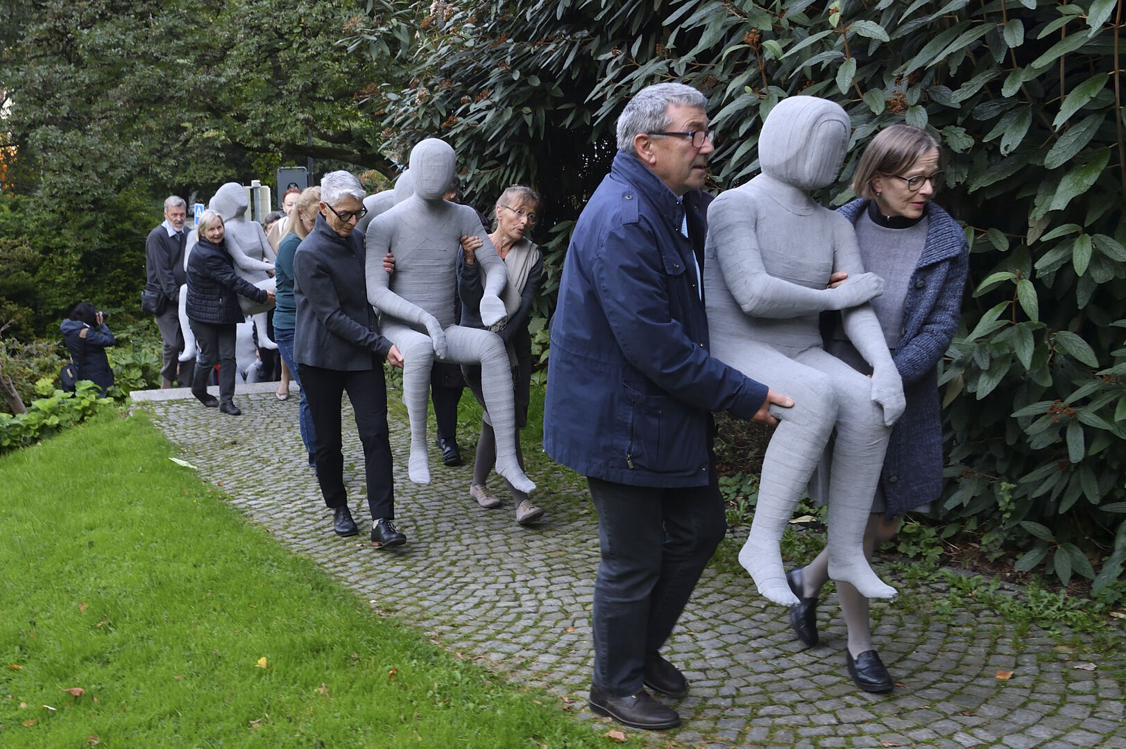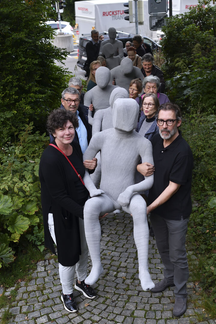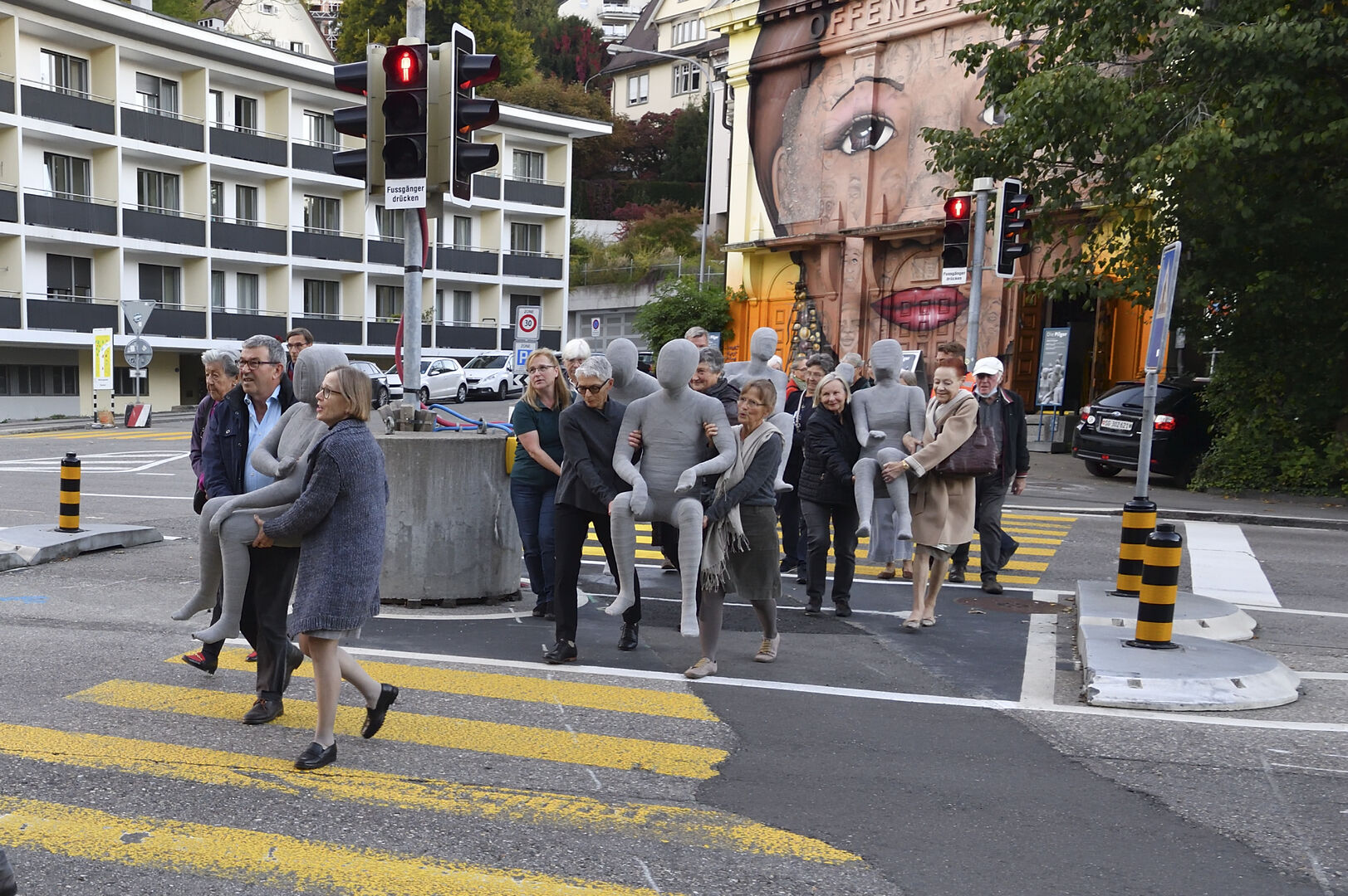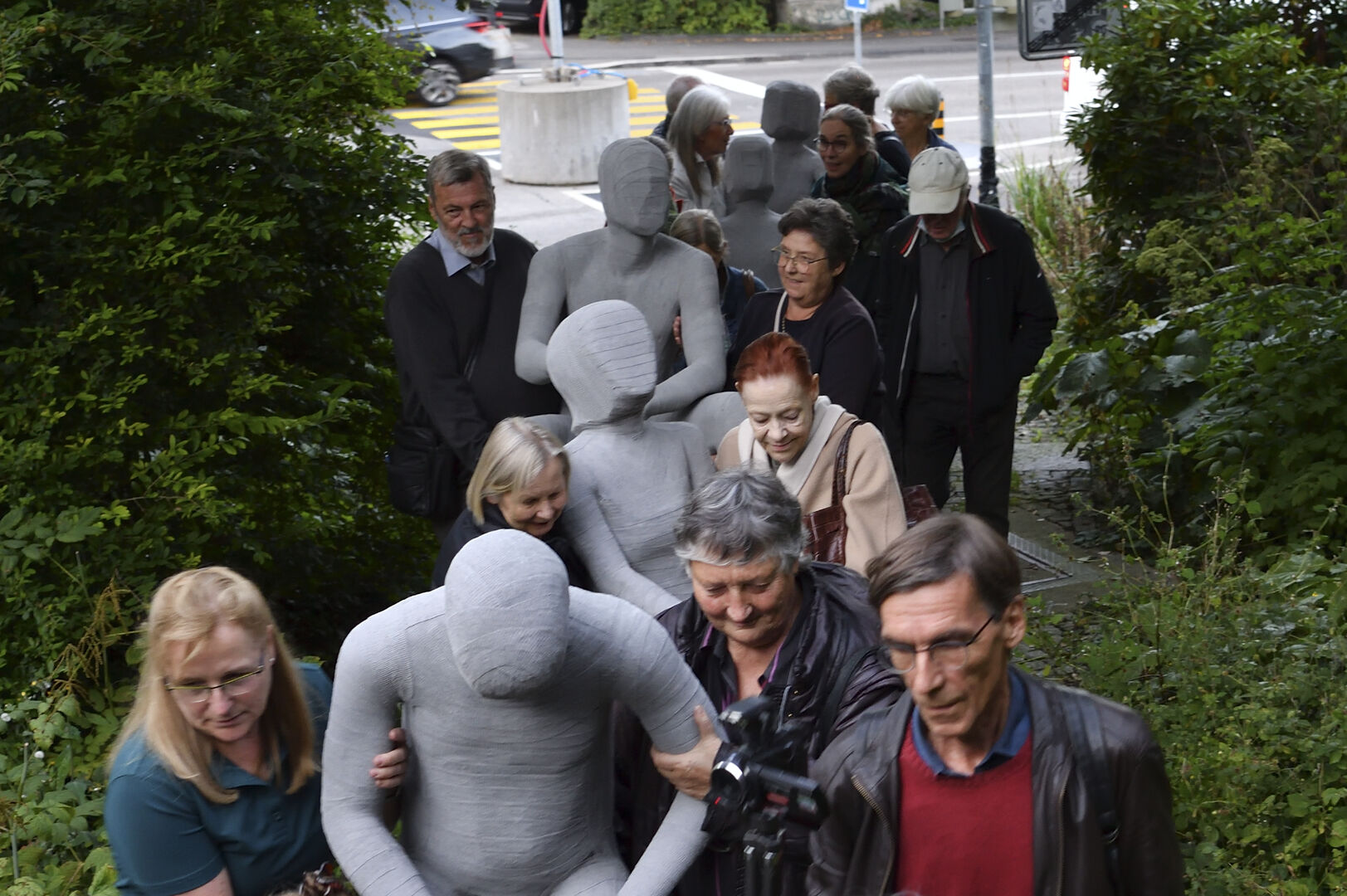 „Wie Pilger sind wir unterwegs, und wie Pilger brauchen wir Pausen zum Innehalten. Die 17 lebensgrossen Skulpturen von Johann Kralewski luden ein zum Innehalten ein. Sie luden