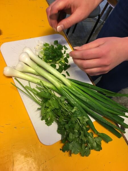 Heute zeigten uns zwei somalische Frauen im FrauenLachen mit viel Geduld und Ruhe, wie man"Sambusa" - gefüllte Somalische Teigtaschen - herstellt. Wir schnitten Knoblauch, Zwiebeln, Frühlingszwiebeln, Rüebli in kleine Stücke. Dann wurde Hackfleisch angebraten und das Gemüse mit Koriander und verschiedenen Gewürzen dazugegeben. Ein wunderbarer Duft erfüllte den Raum.