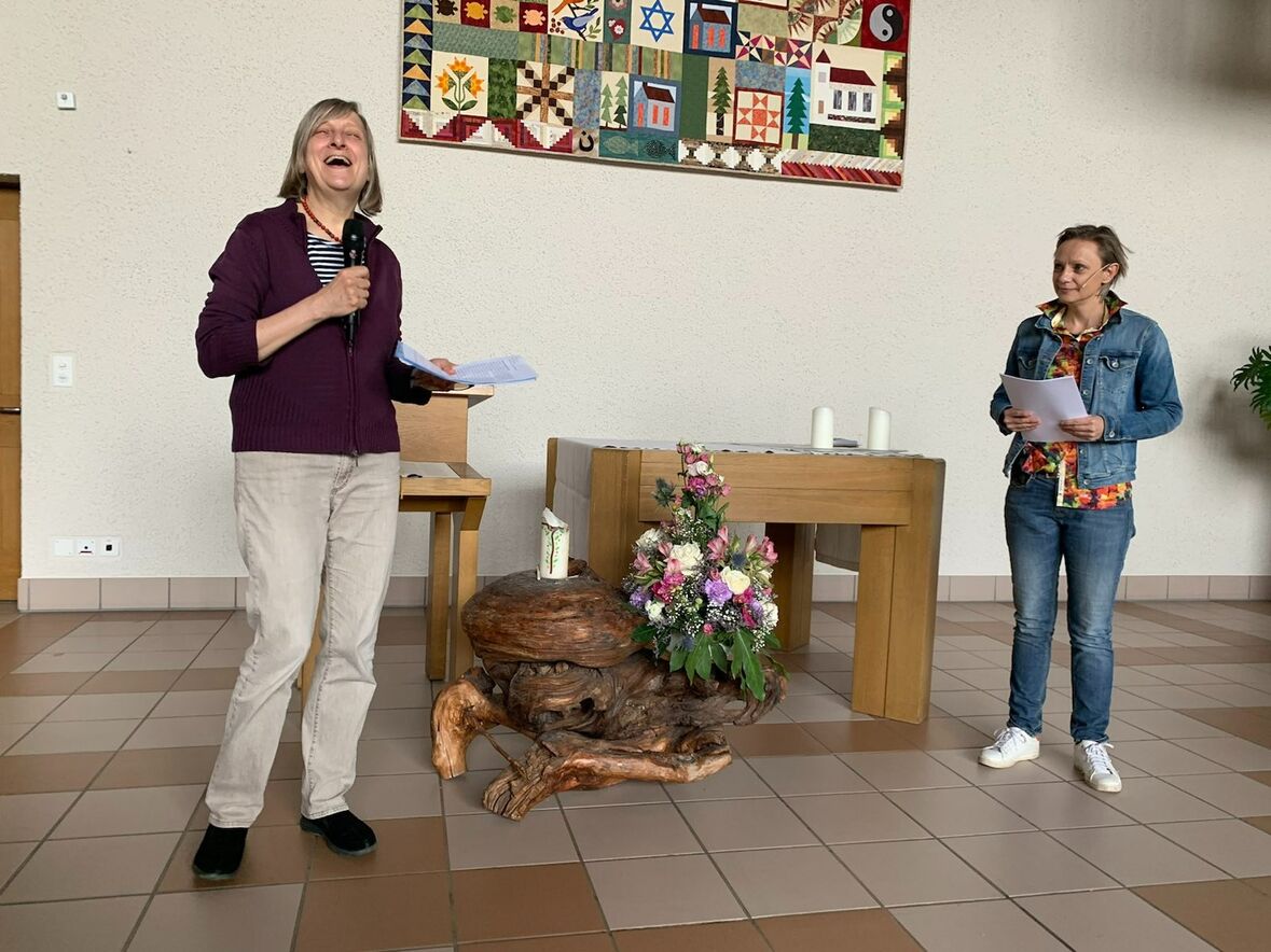 Viel zu lachen gab es in der ökumenischen Kirche Halden: Die Seelsorgerinnen Andrea Weinhold und Petra Mühlhäuser erzählten ihre liebsten Kirchenwitze, Organistin Maja Bösch ergänzte das Programm schwungvoll mit selbst komponierten Orgeltänzen sowie heiteren Volksliedern. Und das regte an zu eigenen humoristischen Beiträgen aus dem Publikum. Bei Kaffee, Berlinern und Fasnachtschüechli klang der Nachmittag gemütlich aus.