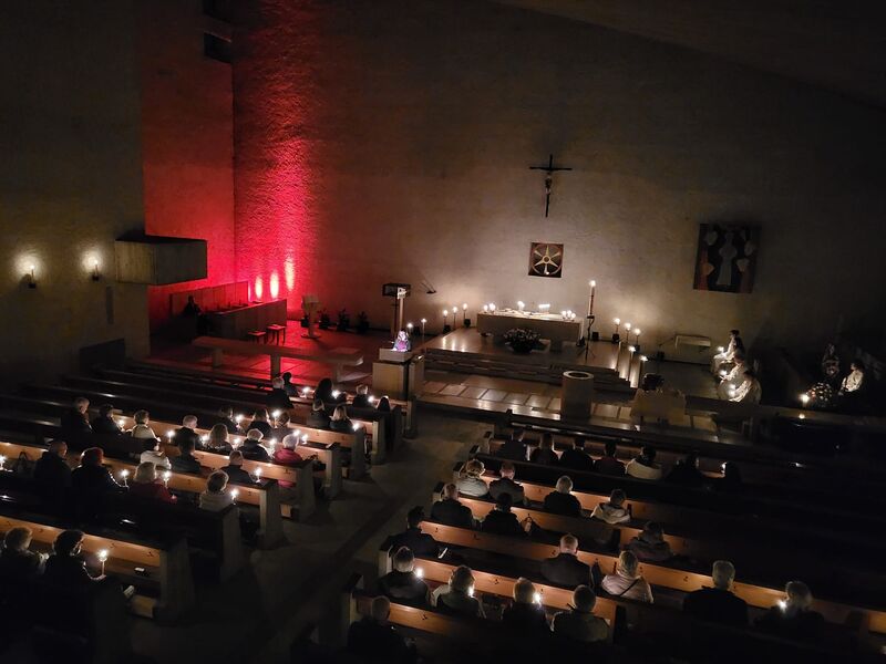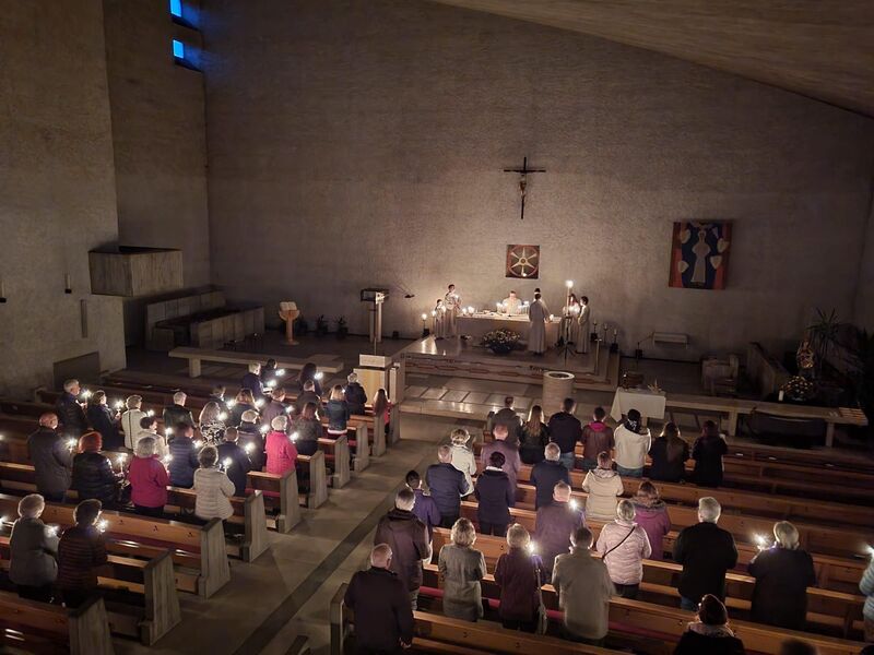 Mit sehr stimmiger Beleuchtung haben die Winkler in diesem Jahr Leiden, Tod und Auferstehung an Karfreitag und in der Osternacht feiern dürfen.