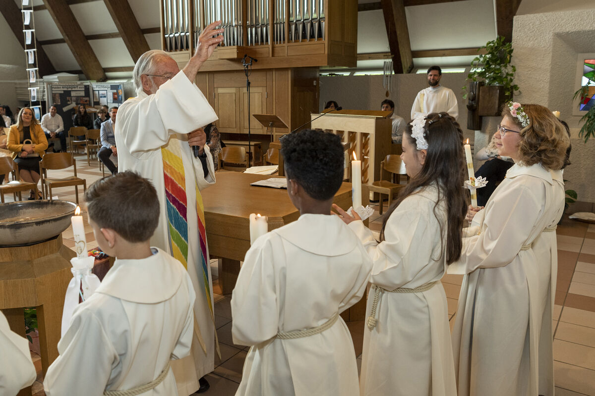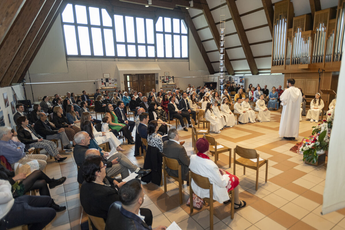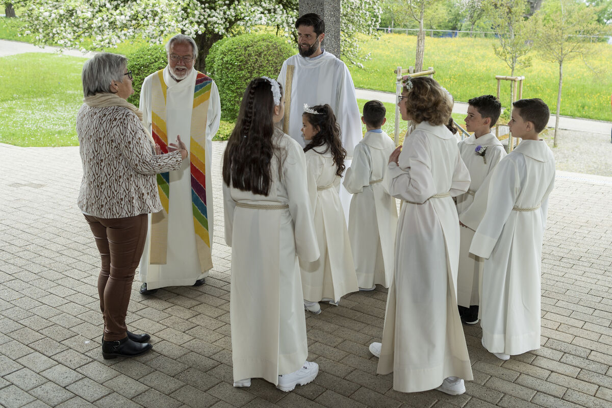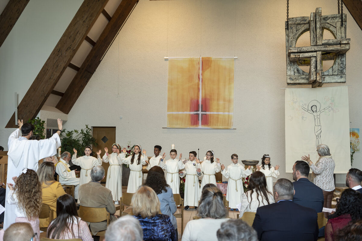 An diesem Sonntag durften 9 Kinder aus unserem Quartier zum ersten Mal die Kommunion empfangen. Es war ein bunter Gottesdienst. Die Erstkommunionkinder begrüssten ihre Gäste in sieben verschiedenen Sprachen. So unterschiedlich Menschen auch sind: unser Glaube bringt sie alle an einem Tisch zusammen - denn es verbinden sich Himmel und Erde. Das durften die Kinder und ihre Familien in diesem Gottesdienst spüren!