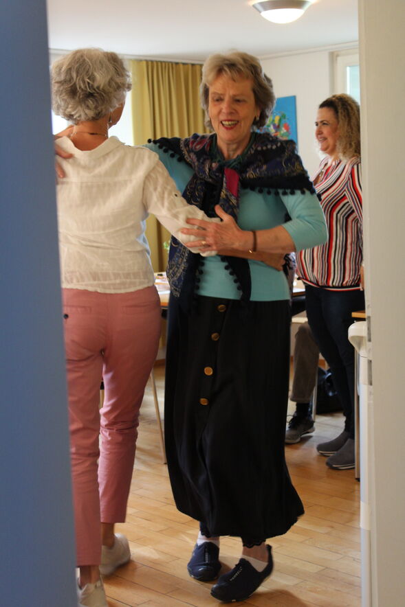 Bunt, lüpfig, tanzend, lachend, heiter, von den farbenprächtigen Acrylbildern beflügelt ....-- So beschreibe ich die Vernissage im Offenen Haus. Hanadi Kadour freute sich innig, dass ihre berührenden Bilder bei den vielen Gästen grossen Anklang fanden und diese mehrere Bilder kauften.