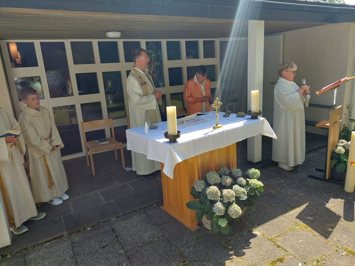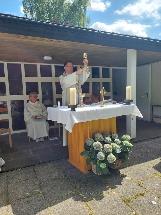 Bei schönem, sonnigem Wetter wurde der gemeinsame Auffahrtsgottesdienst der Pfarreien Abtwil, St.Josefen und Engelburg nach 2 Jahren coronabedingter Pause wieder bei der Kapelle St. Josefen gefeiert. Pfarrer Roman Giger und Pfarreibeauftragte Brigitta Schmid begrüssten die Menschen im Innenhof vor der Kapelle zum gemeinsamen Feiern des Gottesdienstes.