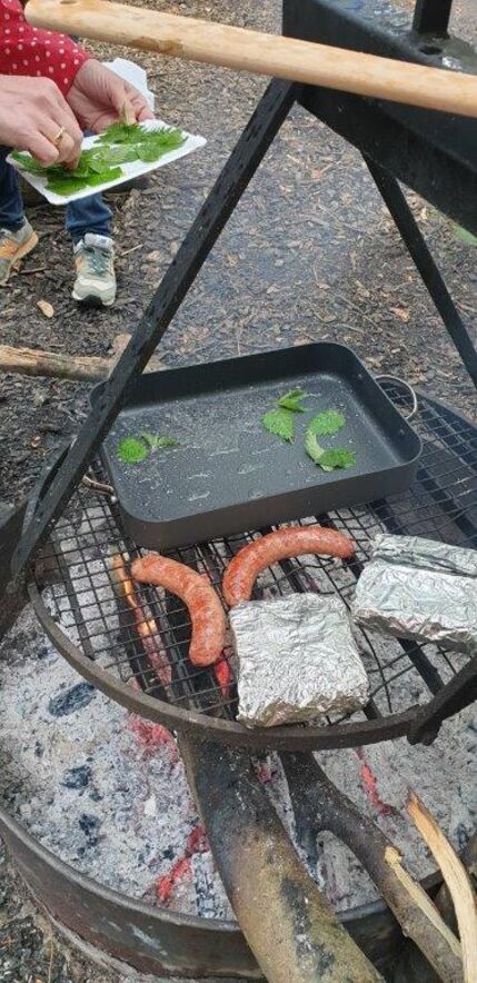 Am Nachmittag wurden auch Familien begrüsst. Wache Kinderaugen suchten nach den Kräutern, die sie auf ihrem Aufgabeblatt hatten. Sie sammelten unter der Anleitung von Andrea Vetterli die gewünschten Kräuter und verarbeiteten sie später zu Tee, Kräutersalzen und Öl. Der grosse Hit waren aber die Brenesseln-, Taubnessel-, Girsch Chips, die über der heissen Glut frisch zubereitet und zum Zvieri genossen werden konnten.