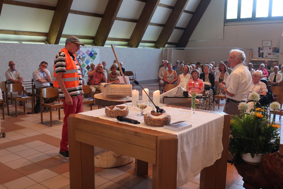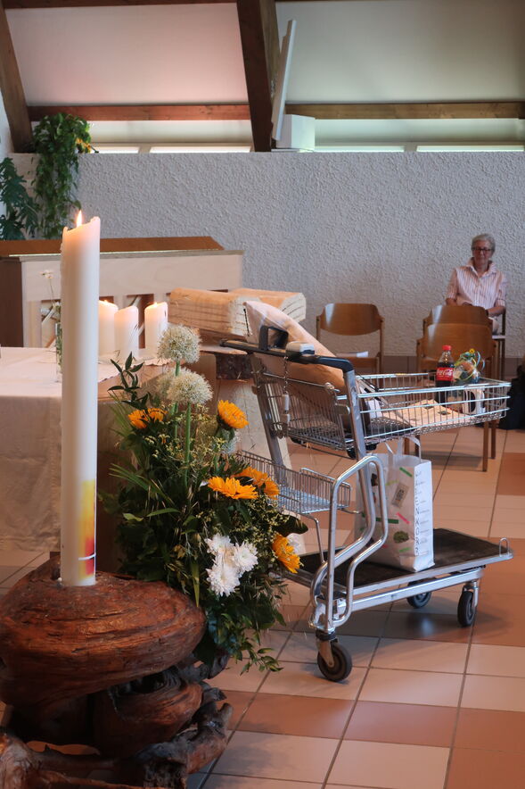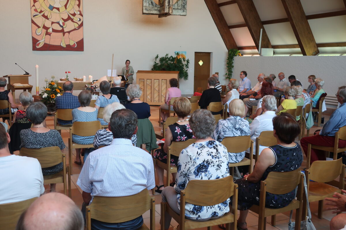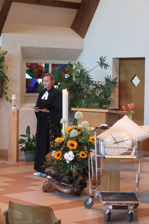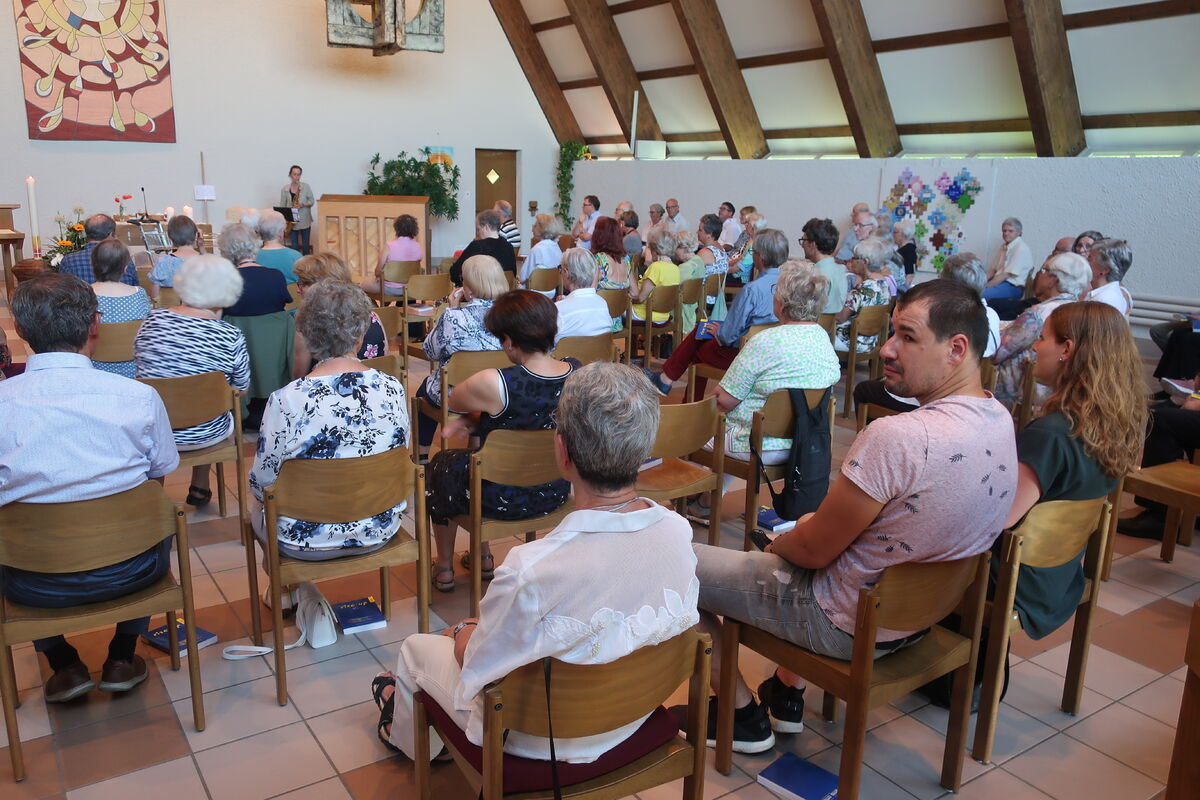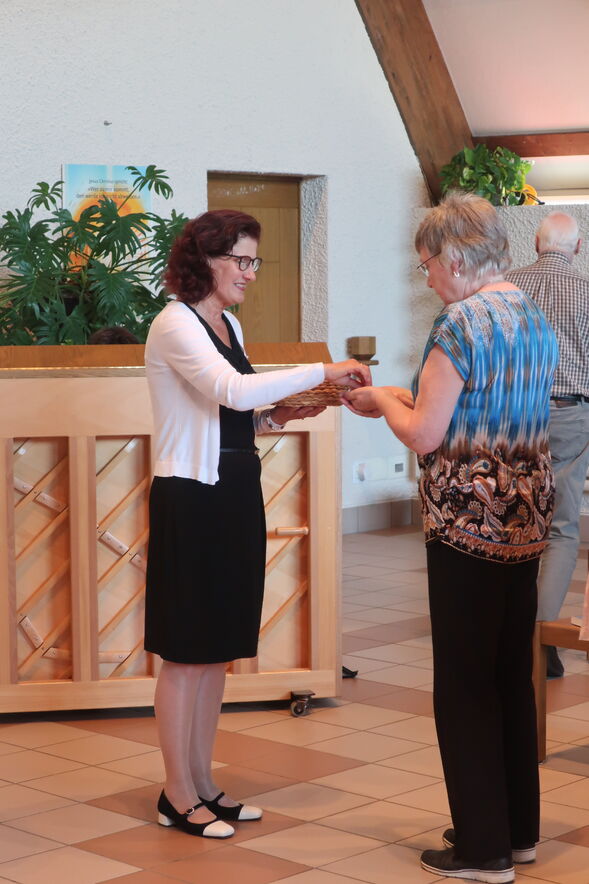 Nach 17 Jahren geht Kerstin Stahlberger im Juli in Pension. Anlässlich Ihres Abschied hat die Ökumenische Gemeinde Halden für die ganz Kirchgemeinde Tablat einen Dankesgottesdienst ausgerichtet. So bunt und vielfältig wie das Abreitsfeld von Diakonin Kerstin Stahlberger war, so bunt und vielfältig gestaltete sich auch der Gottesdienst: Freiwillige vom Warenkorb, vom Grossackerrat, vom Frauezmorge, vom Seniorengottesdienstteam haben genauso ihre Erfahrungen mit Kerstin eingebracht wie Vertreter*innen der reformierten Kirchegemeinde Tablat und des Haldenteams. Kerstin hat mit ihrem Wirken Gott in diese Welt gespiegelt. Im Gottesdienst haben wir diese Spuren ihres Wirkens aufleuchten lassen. Musikalisch verfeinert haben diesen Gottesdienst Sandra Bötschi und Alexander Sennhauser. Noch einmal sagen wir "Vielen herzlichen Dank, liebe Kerstin, und bhüet Di Gott!".