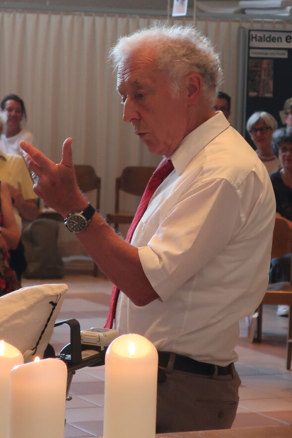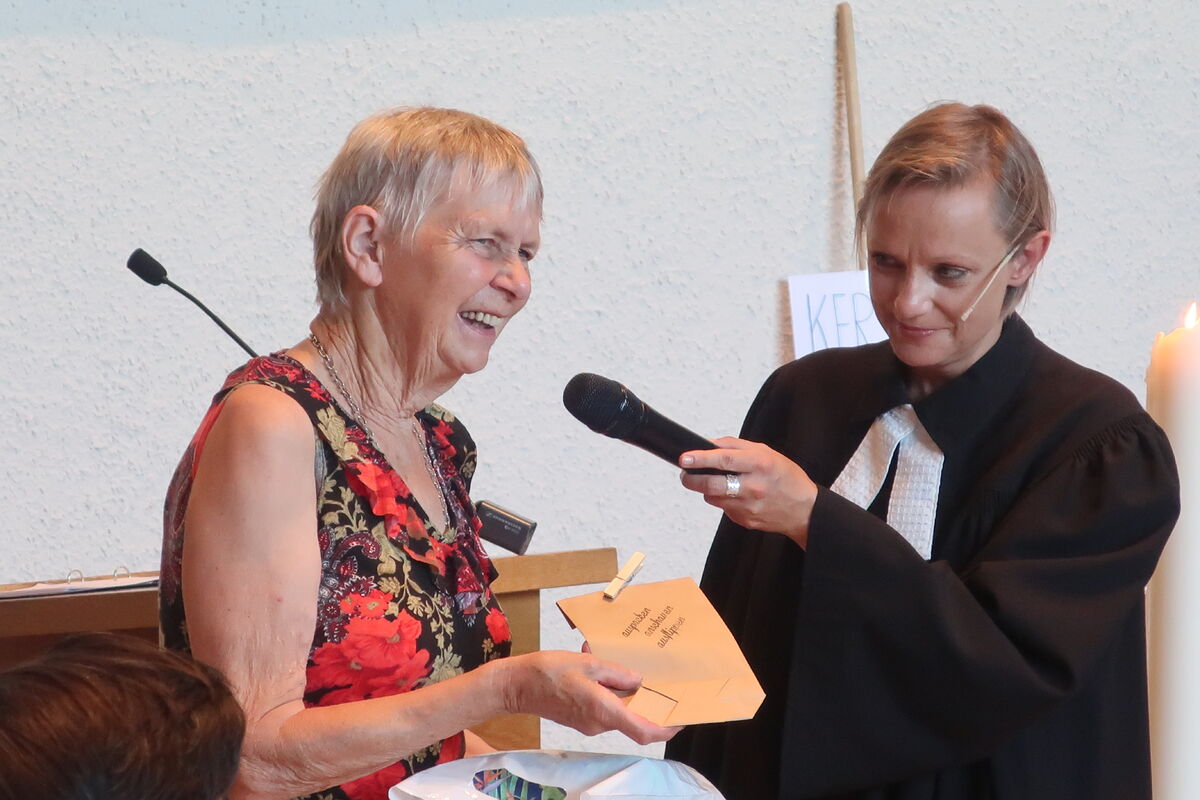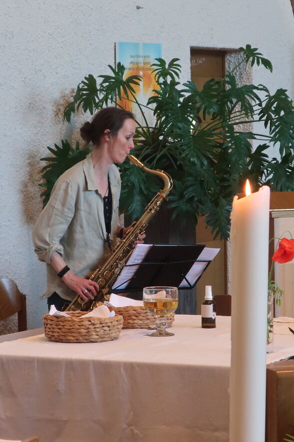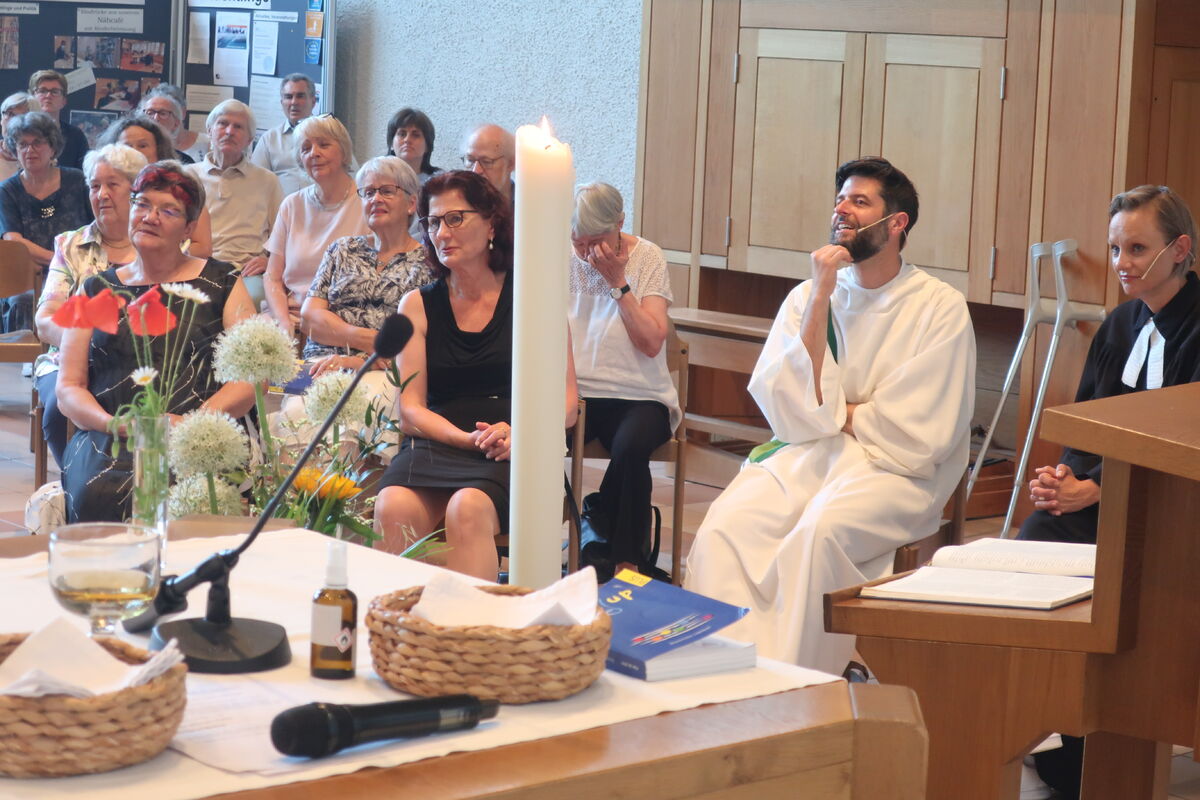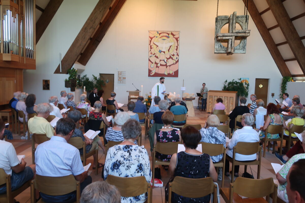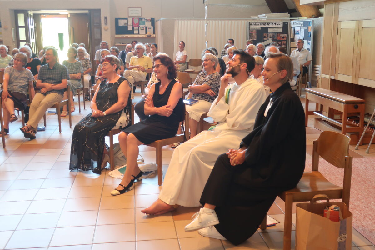 Nach 17 Jahren geht Kerstin Stahlberger im Juli in Pension. Anlässlich Ihres Abschied hat die Ökumenische Gemeinde Halden für die ganz Kirchgemeinde Tablat einen Dankesgottesdienst ausgerichtet. So bunt und vielfältig wie das Abreitsfeld von Diakonin Kerstin Stahlberger war, so bunt und vielfältig gestaltete sich auch der Gottesdienst: Freiwillige vom Warenkorb, vom Grossackerrat, vom Frauezmorge, vom Seniorengottesdienstteam haben genauso ihre Erfahrungen mit Kerstin eingebracht wie Vertreter*innen der reformierten Kirchegemeinde Tablat und des Haldenteams. Kerstin hat mit ihrem Wirken Gott in diese Welt gespiegelt. Im Gottesdienst haben wir diese Spuren ihres Wirkens aufleuchten lassen. Musikalisch verfeinert haben diesen Gottesdienst Sandra Bötschi und Alexander Sennhauser. Noch einmal sagen wir "Vielen herzlichen Dank, liebe Kerstin, und bhüet Di Gott!".