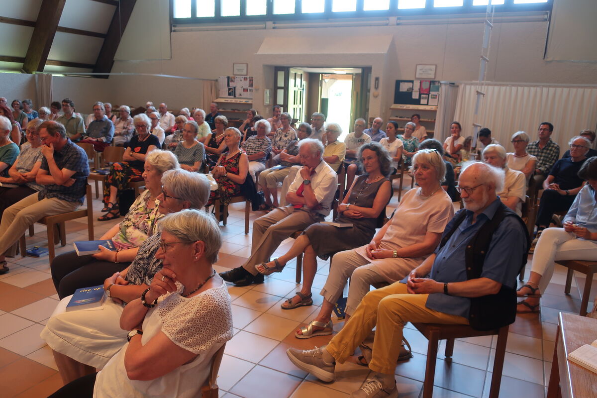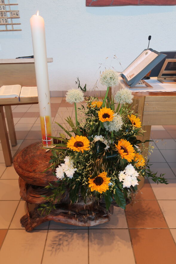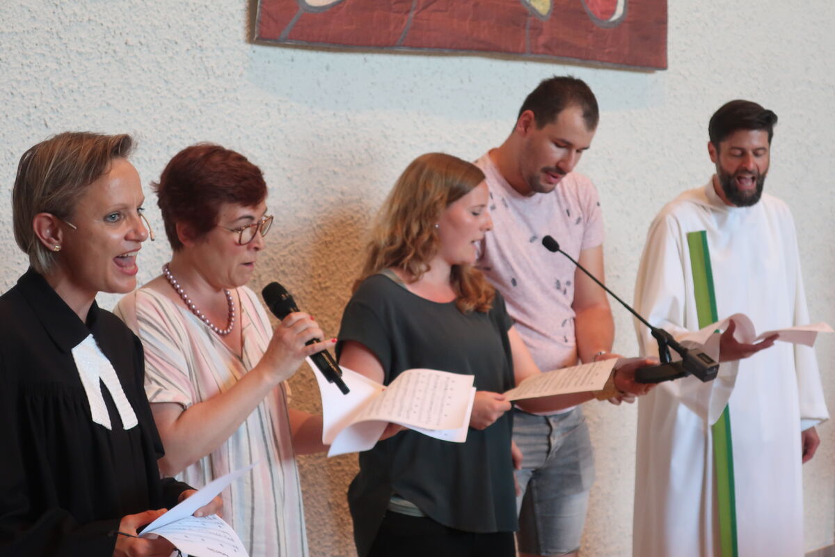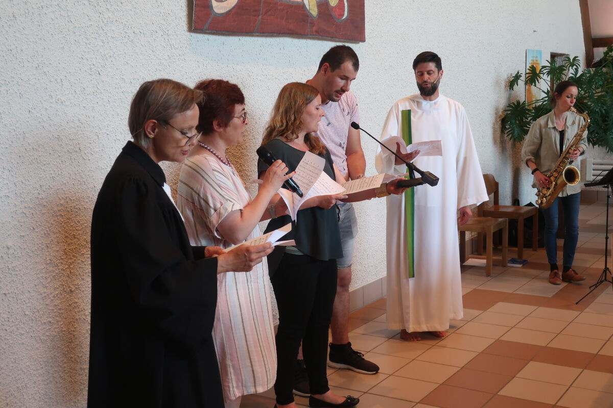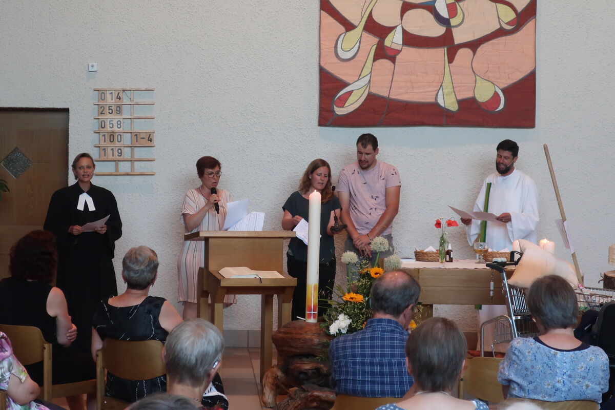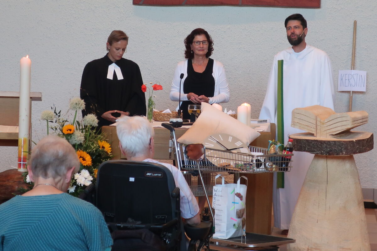 Nach 17 Jahren geht Kerstin Stahlberger im Juli in Pension. Anlässlich Ihres Abschied hat die Ökumenische Gemeinde Halden für die ganz Kirchgemeinde Tablat einen Dankesgottesdienst ausgerichtet. So bunt und vielfältig wie das Abreitsfeld von Diakonin Kerstin Stahlberger war, so bunt und vielfältig gestaltete sich auch der Gottesdienst: Freiwillige vom Warenkorb, vom Grossackerrat, vom Frauezmorge, vom Seniorengottesdienstteam haben genauso ihre Erfahrungen mit Kerstin eingebracht wie Vertreter*innen der reformierten Kirchegemeinde Tablat und des Haldenteams. Kerstin hat mit ihrem Wirken Gott in diese Welt gespiegelt. Im Gottesdienst haben wir diese Spuren ihres Wirkens aufleuchten lassen. Musikalisch verfeinert haben diesen Gottesdienst Sandra Bötschi und Alexander Sennhauser. Noch einmal sagen wir "Vielen herzlichen Dank, liebe Kerstin, und bhüet Di Gott!".