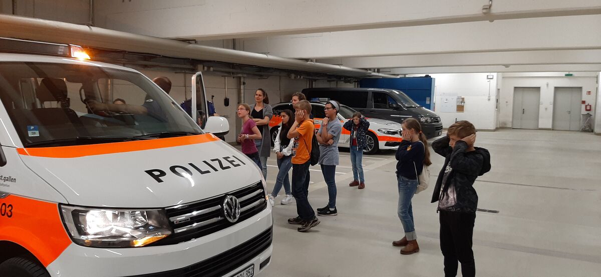 Unser Quartierpolizist Heinz Bucher ermöglichte uns DomMinis einen Einblick in ihre spannende Arbeit, die Fahrzeuge und verschiedenen Räume der Stadtpolizei St.Gallen.