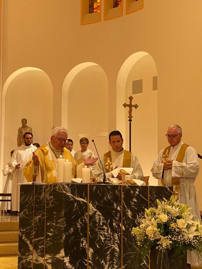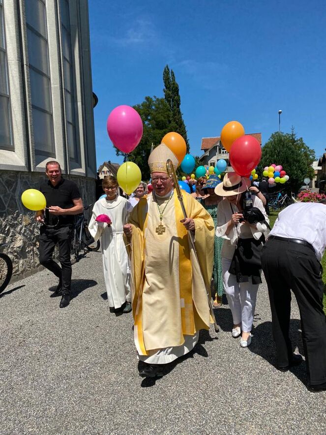 Grande solennità e gioia nella Celebrazione della Consacrazione dell'Altare delle Chiesa Hl. Theresia in Rheineck dopo i lavori di ristrutturazione completa. Santa Messa presieduta dal nostro amato vescovo Markus Büchel.