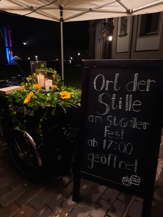 Als ich diese Worte hörte musste ich, trotz des strömenden Regens, schmunzeln. Ich war dieses Jahr das erste Mal beim St.Galler Stadtfest und dem Ort der Stille dabei. Zusammen mit elf freiwilligen Helfern durfte ich dieses Projekt unterstützen. Obwohl es ein sehr verregnetes Wochenende war, oder gerade deswegen, waren der Freitag- und Samstagabend extrem stimmungsvoll. Die über 150 Besucher brachten allerlei Emotionen mit. Fröhliche Feststimmung, Trauer, Freude, Andacht, Befreiung und Tränen. Alles war in der Schutzengel Kapelle willkommen.