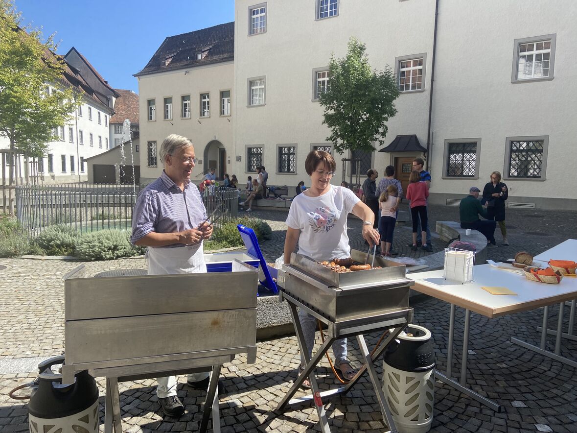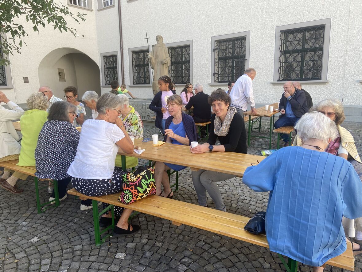 Nach dem Gottesdienst stärkten sich Gross und Klein mit Wurst und Brot im Bischofshof und verweilten bei herrlichem Spätsommerwetter, bis der Spielplausch für die Kinder und Familien begann. Dankbar für das gute Gelingen, für die gute Vorbereitung des DomPlauschs und die Helfenden der Apérogruppe liessen wir den sonnigen, frohen Sonntag ausklingen.