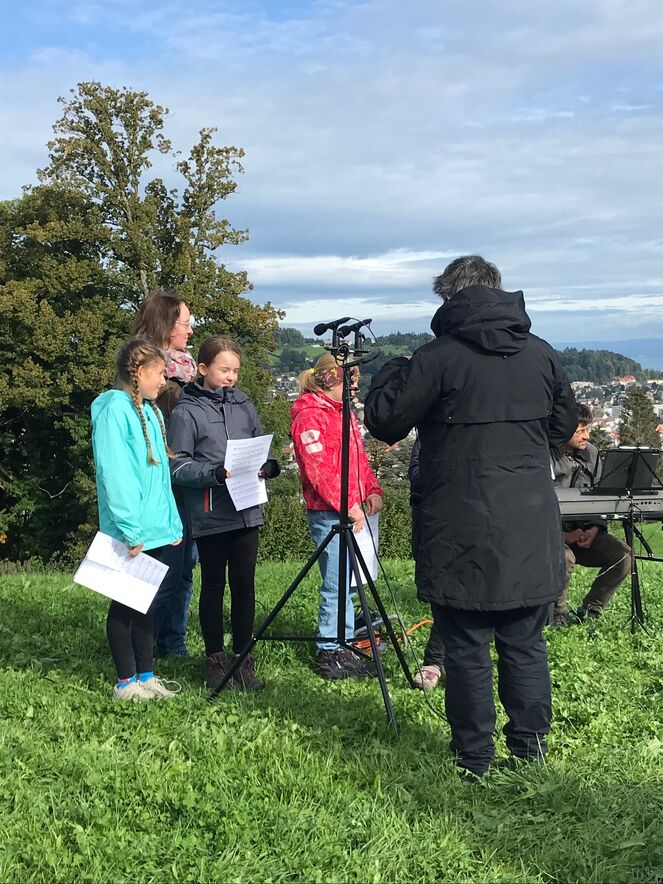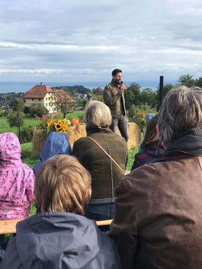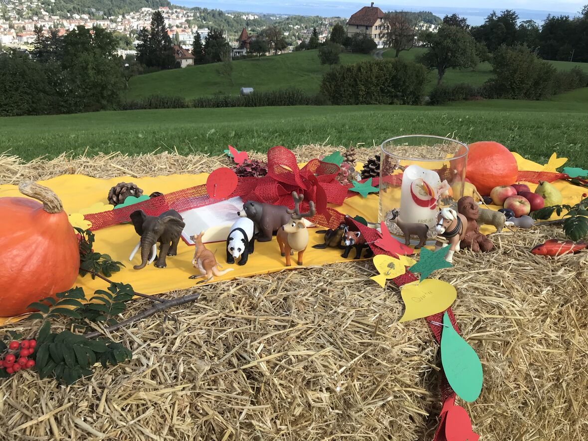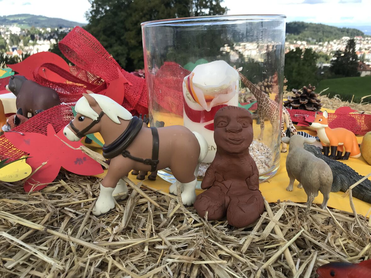 Als Erntedankfest feierten wir einen Familiengottesdienst bei der Familie Gantenbein auf ihrem Bauernhof im Scheitlinsbüchel. Trotz des eher kühlen, jedoch sonnigen Wetters kamen viele Familien mit ihren Kindern und Erwachsene aus den Quartieren im Südosten zu diesem lebendigen und fröhlichen Gottesdienst.