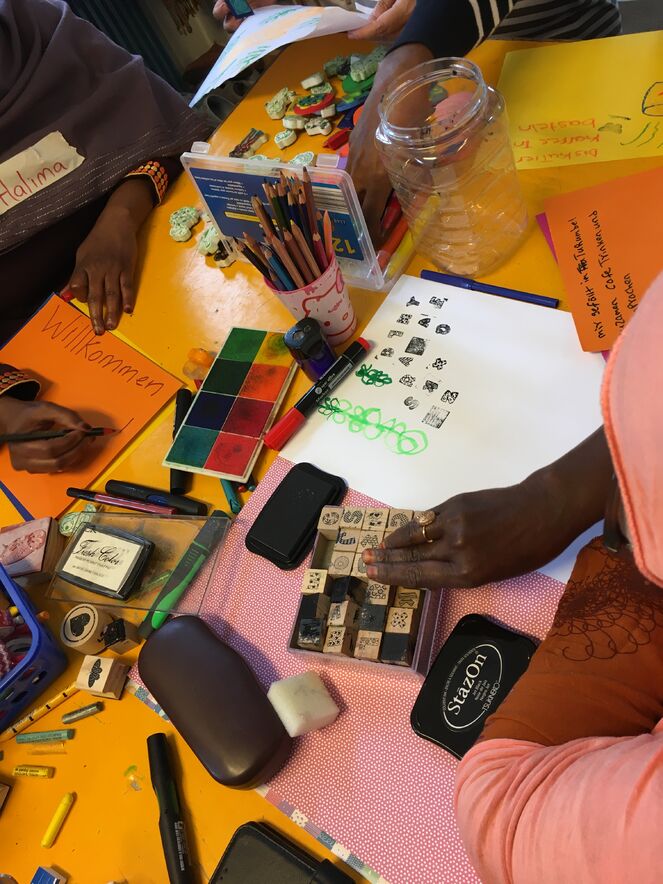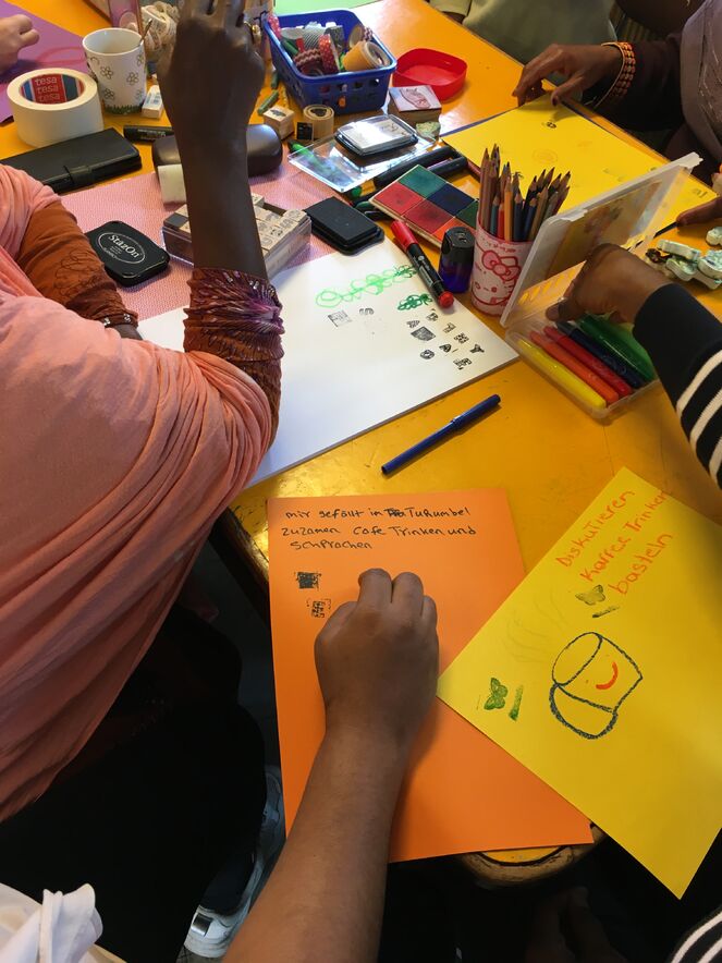 Die Studierenden setzten mit den Frauen, die jeweils zum FrauenLachen kommen, gestalterisch ihre Bilder um zu der Frage, was das tiRumpel für Jede besonders macht.