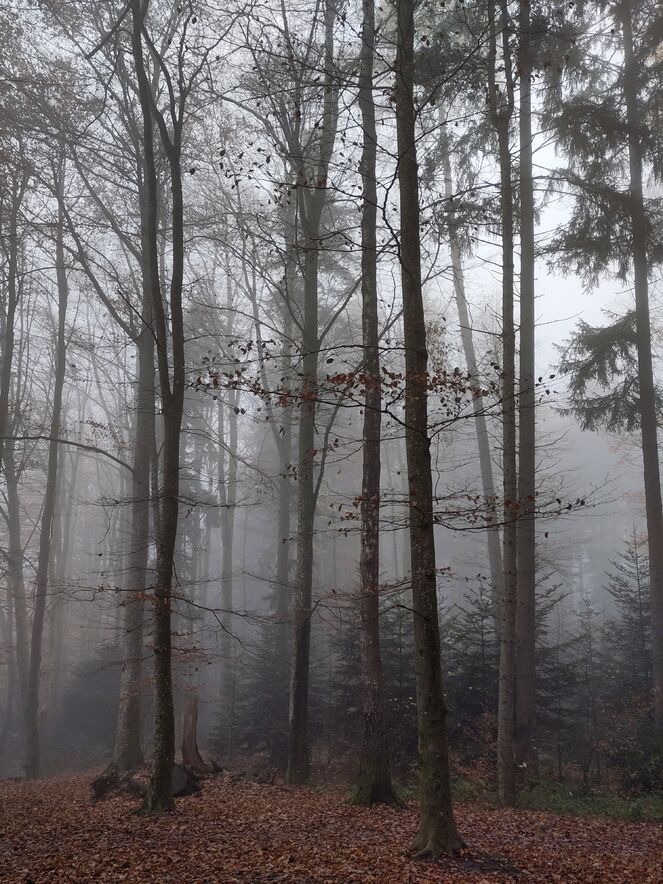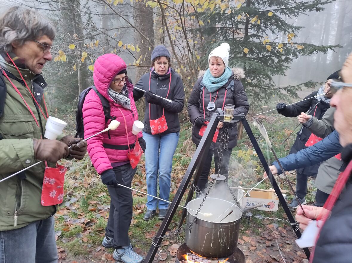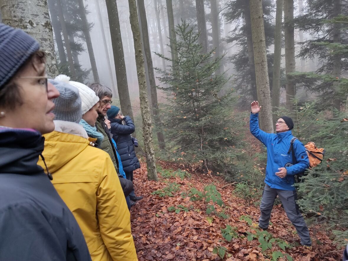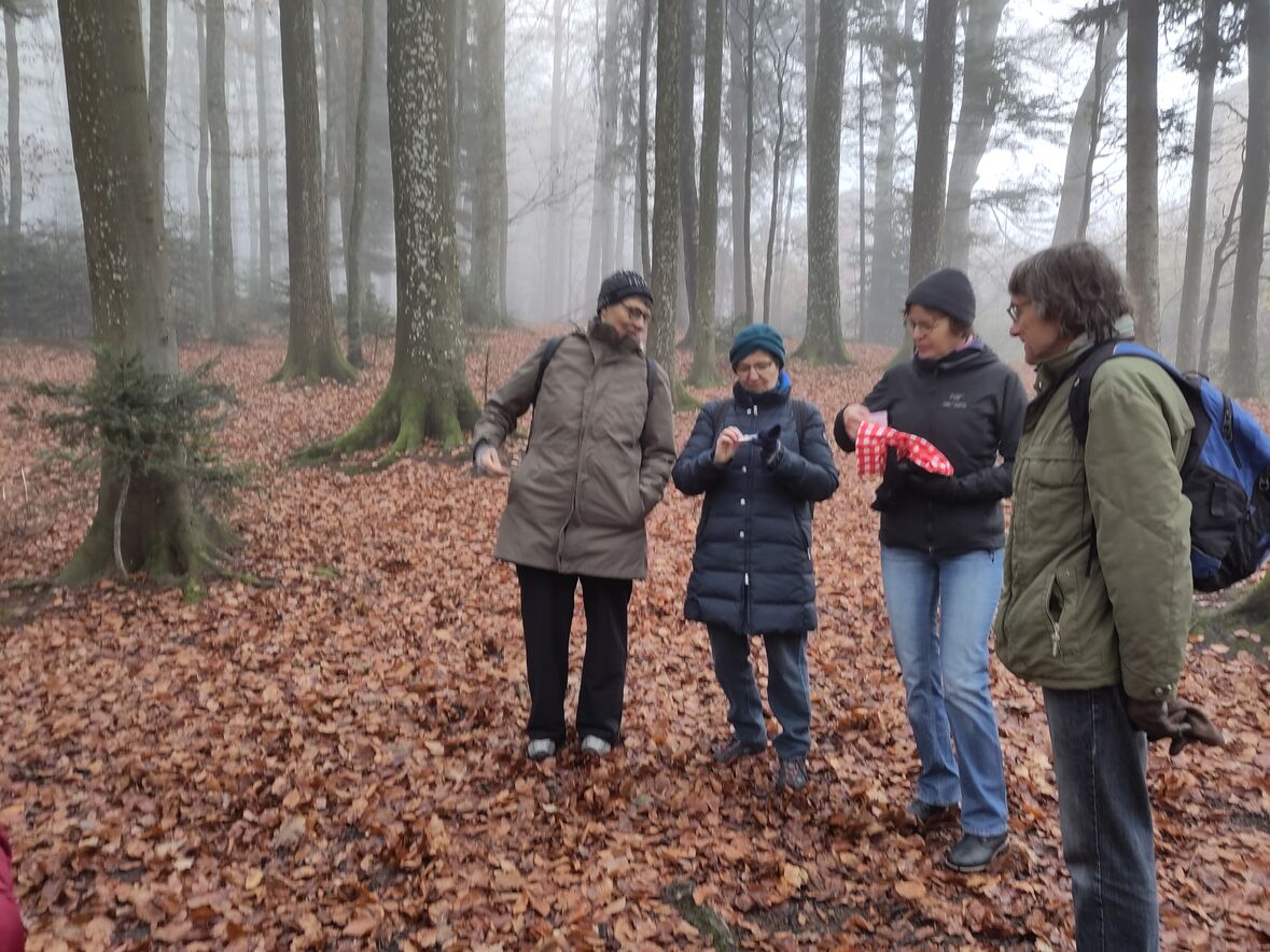Wie kommst Du durch den Winter? Bäume und Tiere im Wald haben ganz unterschiedliche Strategien. Mit Revierförster Walter Bicker spazierten wir durch den winterlichen Hagenbuchwald. Er erzählte uns von den Buchen und Eichen, Fichten, Lärchen, und Weisstannen, dem frisch gepflanzten Bergahorn, von gefrässigen Rehen und «schlauem» Stechlaub, von Eichhörnchen und Eichelhähern. Spielerische Elemente und Gedichte zur Winterruhe begleiteten uns. Und zum Abschluss wärmten wir uns mit einem feinen Fondue auf.