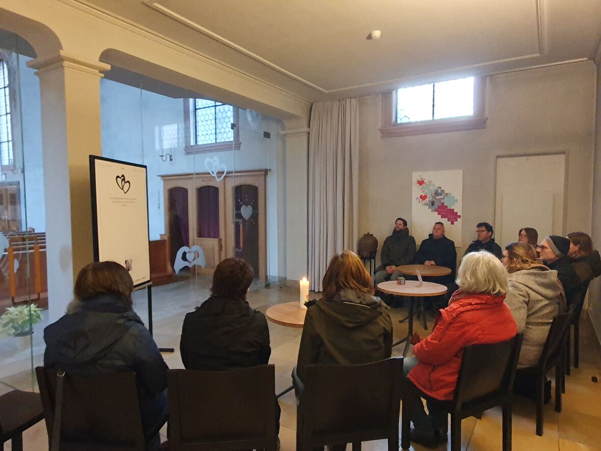 Auchi im Rahmen unserer internen Südost-Sitzung beschäftigen wir uns mit den 12 verschiedenen Herzen, die auf der Glaswand zum Begegnungsraum zu uns sprechen.