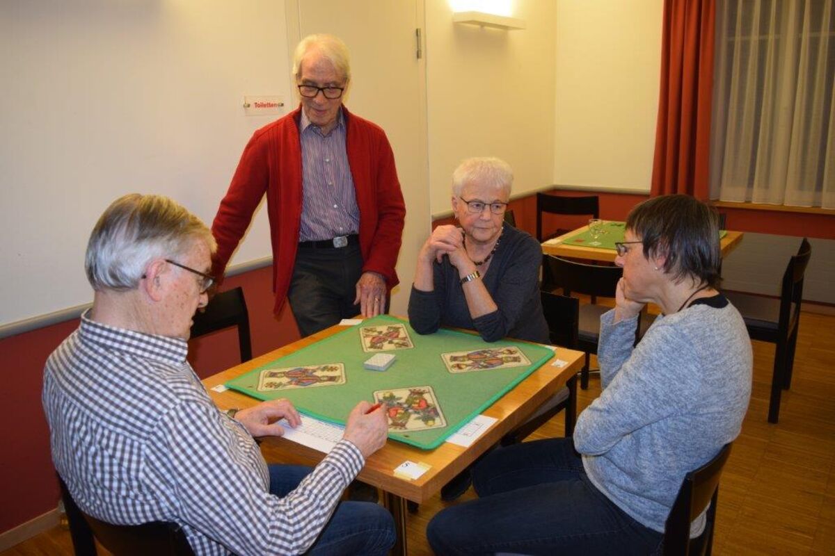 Ein paar interessierte Frauen und Männer haben sich im Pfarreizentrum zum traditioniellen Jass-Abend eingefunden.