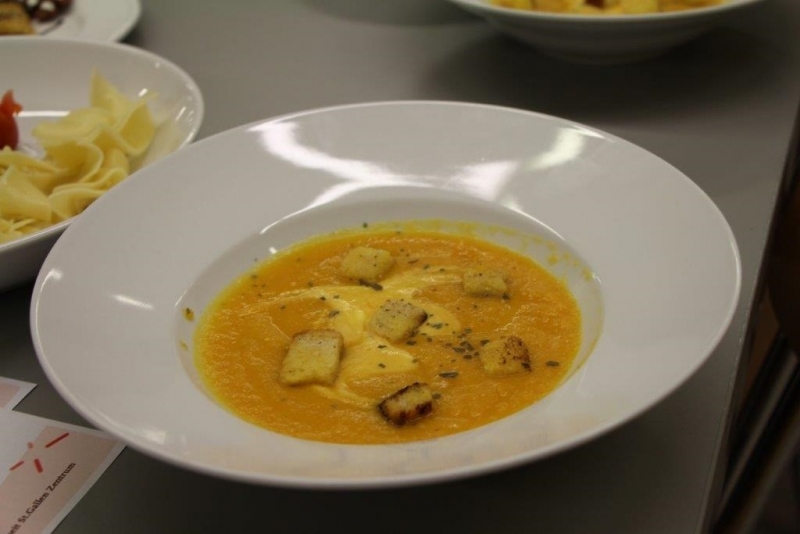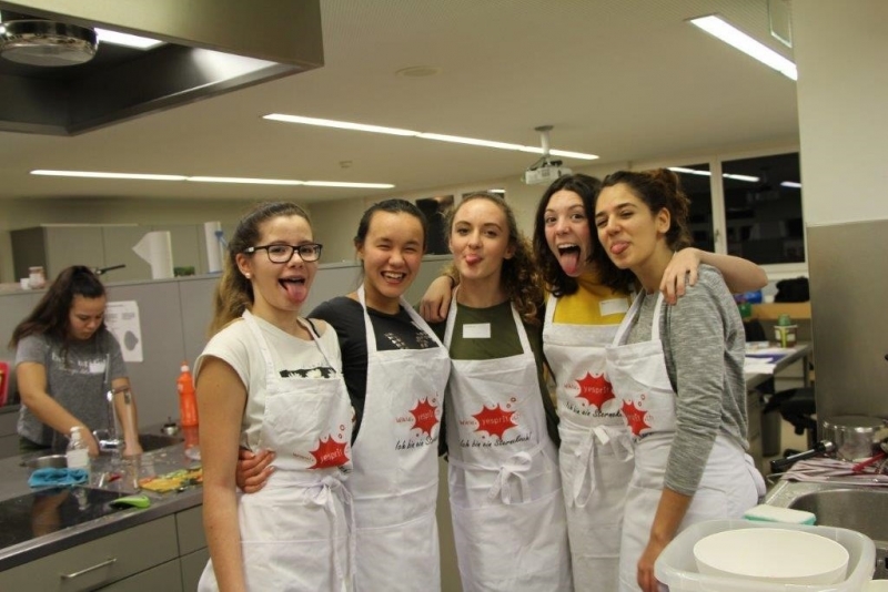 Der Auftrag war, mit einer Auswahl an zur Verfügung gestellten regional und saisonaler Lebensmittel ein Dreigangmenu zu kreieren. Während die einen noch am planen waren, begannen andere schon zu kochen. Die zur Verfügung gestellte Zeit reichte um in Ruhe den Auftrag zu erfüllen. Das emsige Treiben der Jungköchinnen in der Schulküche der Meitleflade erinnerte an einen Ameisenhaufen, weil jede wusste, was zu tun war und anpackte. Die meisten Handgriffe sassen schon sehr gut, als Joker stand ein Profikoch für Anfragen zur Verfügung und das Yesprit Team stand ebenfalls bereit.