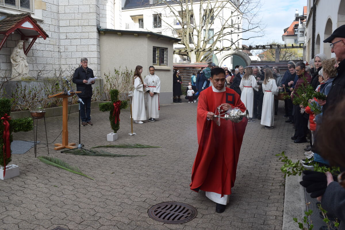 Die Heilige Woche ist eröffnet. Mit Palmzweigen und Gesang haben wir Jesus begrüsst und begleitet.