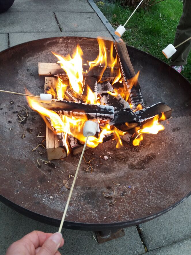 Wir haben bereits die Umstellung auf die Sommerzeit genutzt und die Feuerschale rausgeholt.